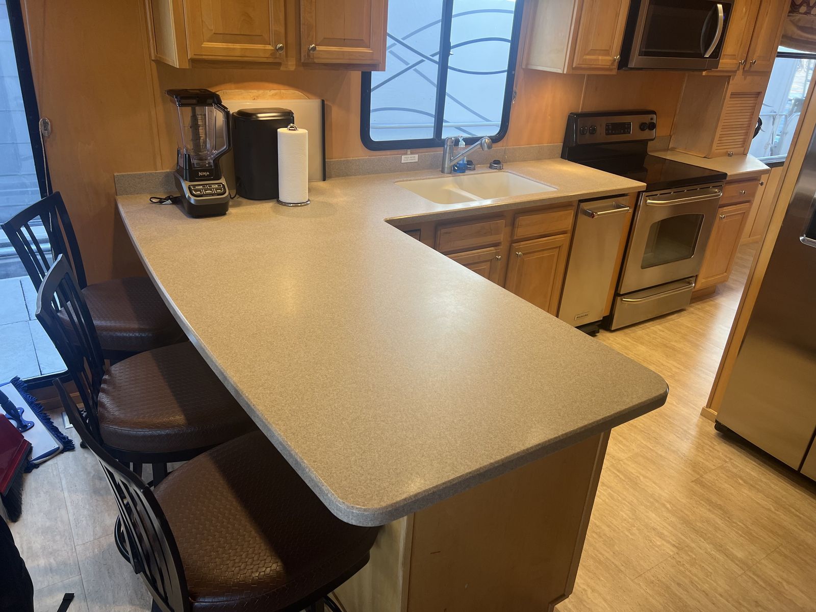 Solid Surface countertops in Galley and Bathrooms
