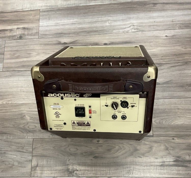 The Acoustic A20 Guitar Amp is a 20-watt amplifier designed for acoustic-electric guitars. It features a 6.5-inch speaker, built-in microphone input, reverb, and a three-band EQ. Ideal for practice and small performances, it offers clear, natural sound with portability and ease of use.
