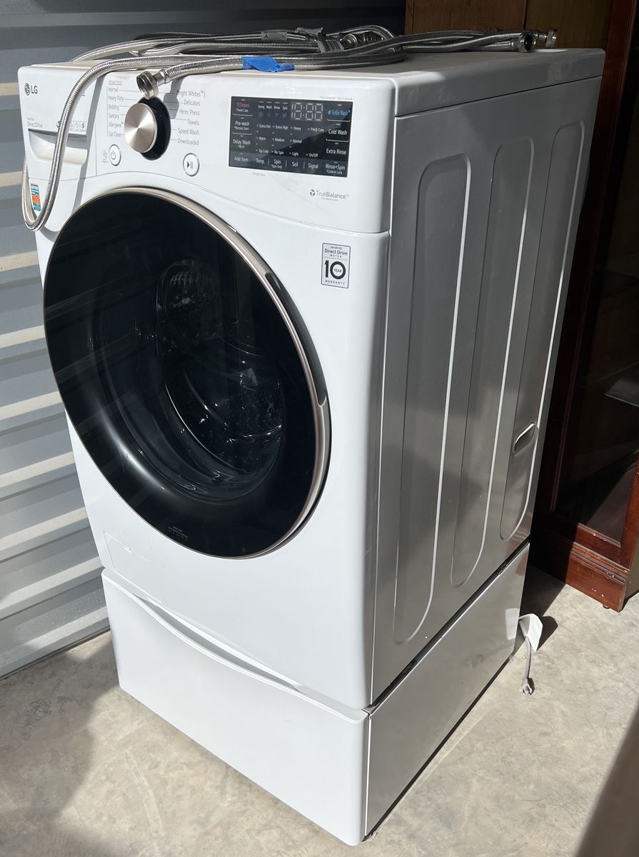 VenmoClean, reliable washer and electric dryer combo with steam/anti-wrinkle features and pedestals with drawers for storage. They are in great mechanical and great cosmetic condition. These Smart appliances can be controlled with an app on your phone.