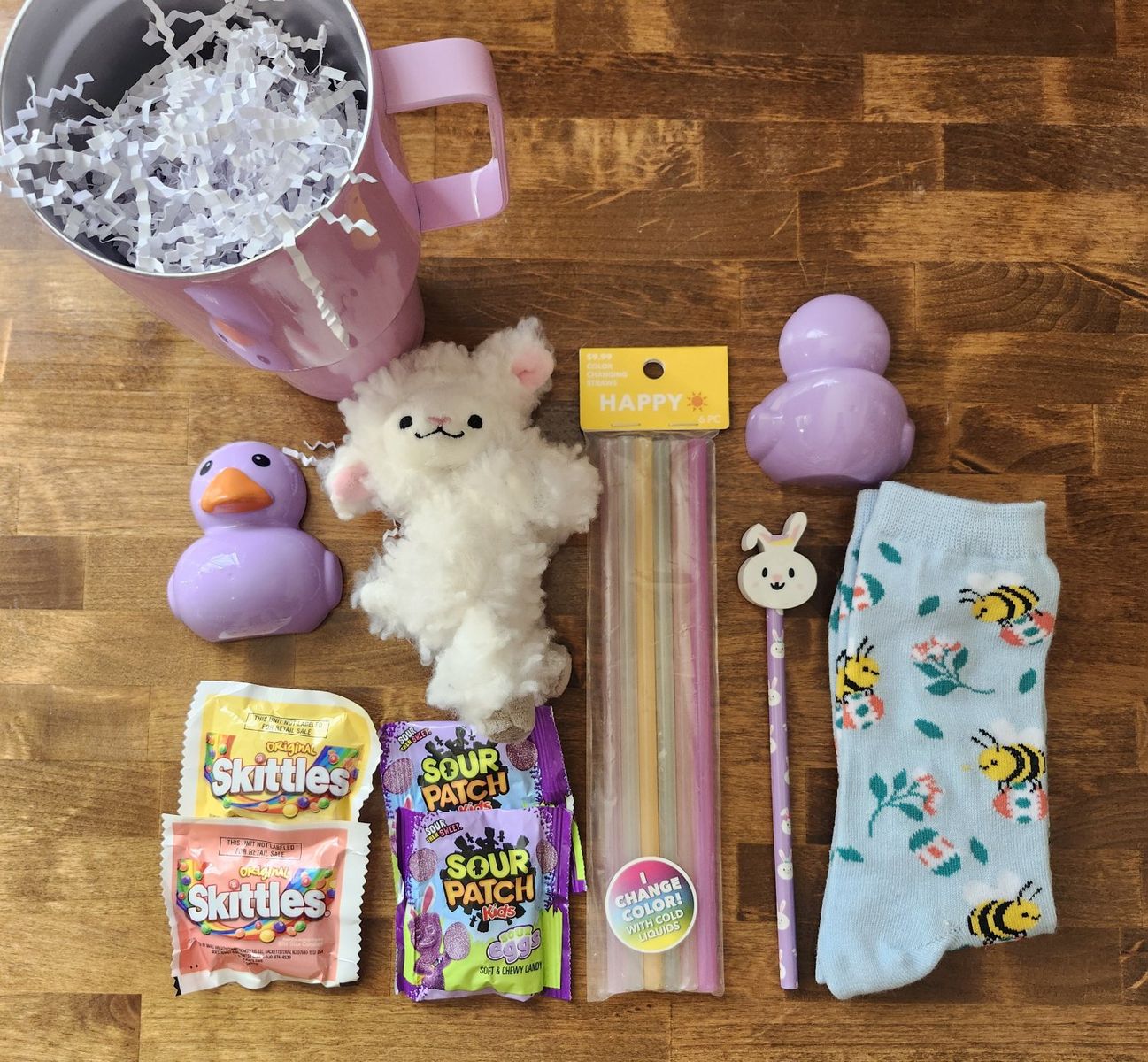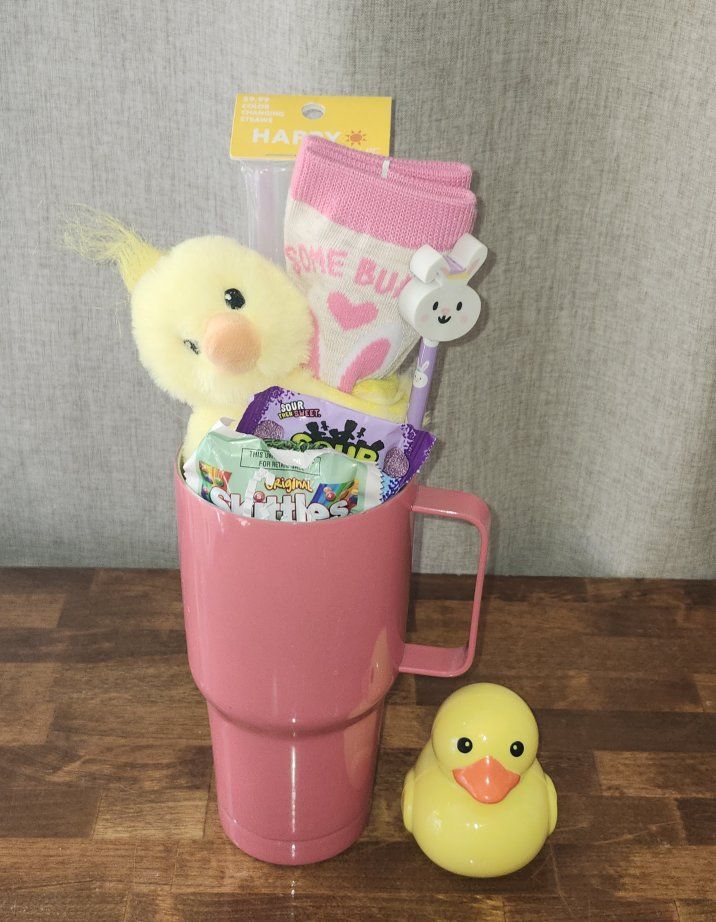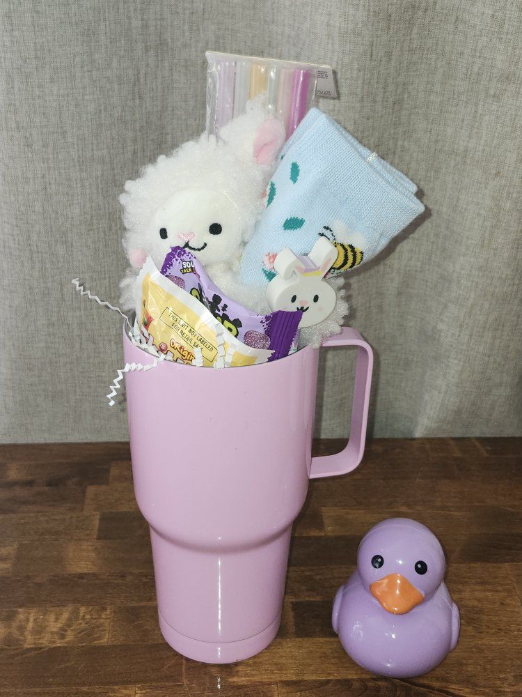 VenmoFilled Easter tumbler gift sets, ready to go. Each one includes a reusable tumbler, cute socks, color-changing straws, pencil, plush slap bracelet, duck egg container, and candy. Great Easter basket alternative. 2 available. $20 each or $37 for both.