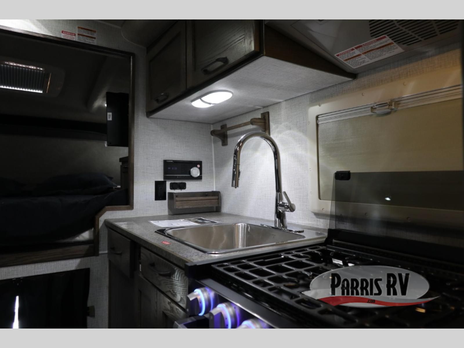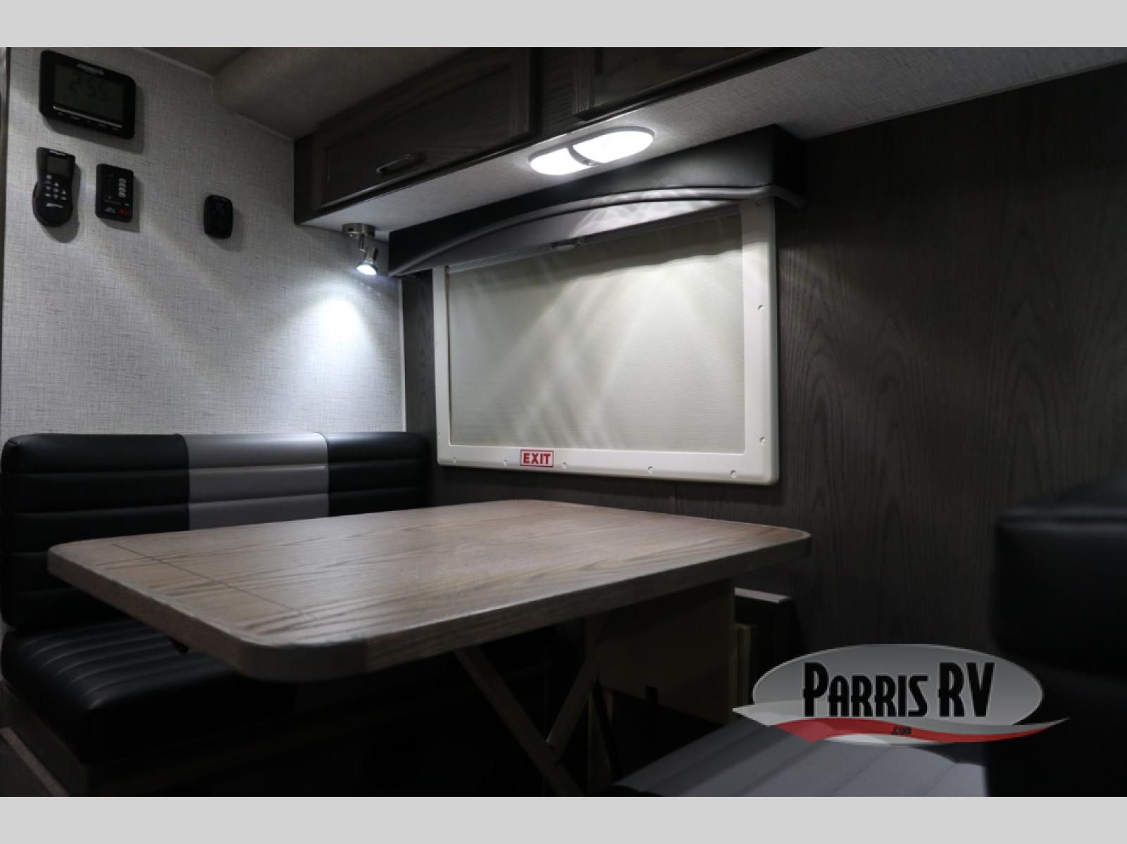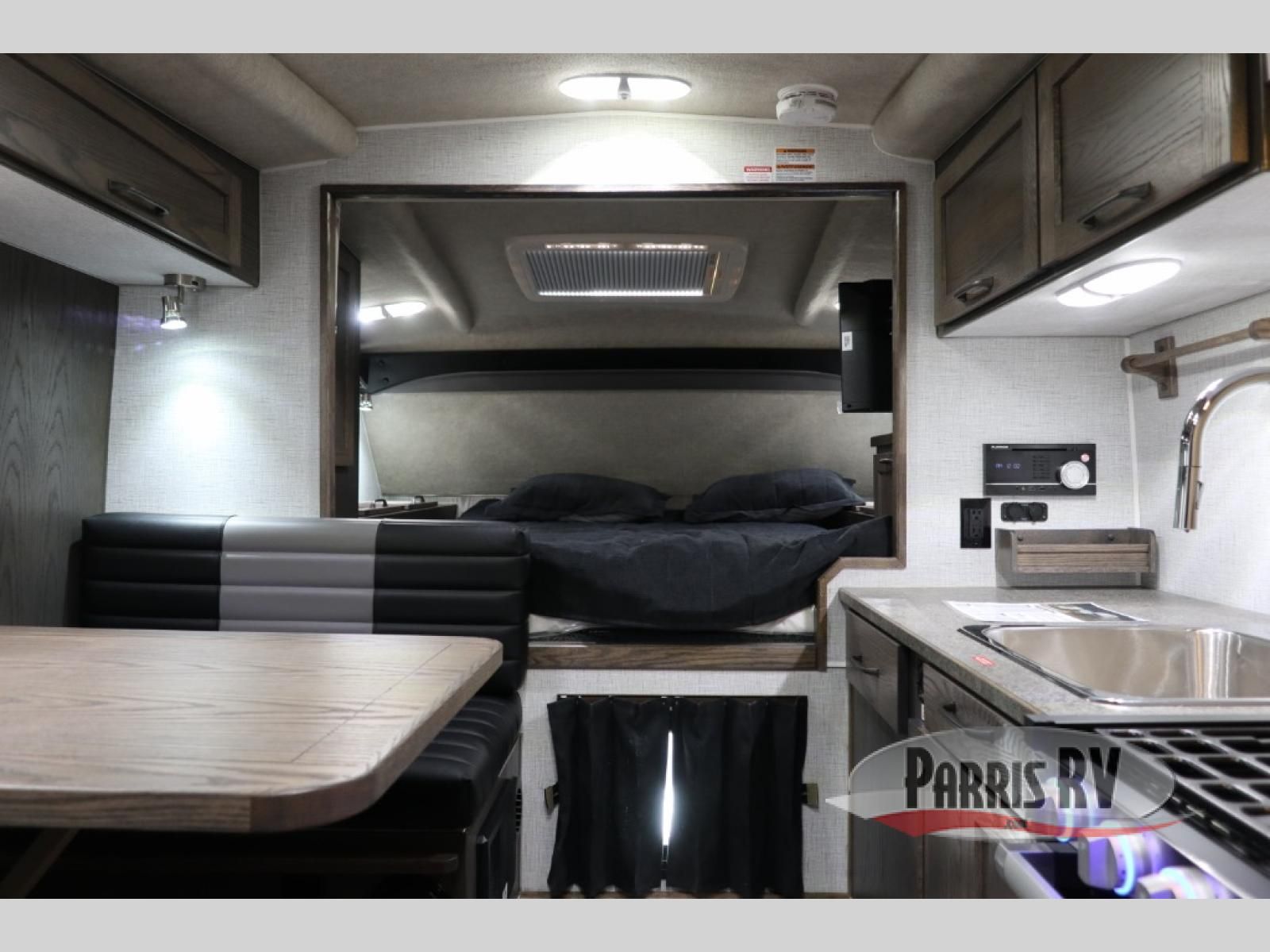 Enjoy a home on top of your long bed truck with this truck camper! Start each morning feeling recharged after sleeping on the front queen bed while your electronics recharge at the 12V USB charging stations. Fill your bellies with fried bacon and eggs cooked on the three burner stove with oven and drink a cold glass of orange juice stored in the 6.3 cu. ft. three way refrigerator. Plus, you can eat your meals at the face-to-face dinette and transform into an extra sleeping space. You can even freshen up each morning in the wet bath. There is plenty of storage throughout with closets and overhead cabinets too!