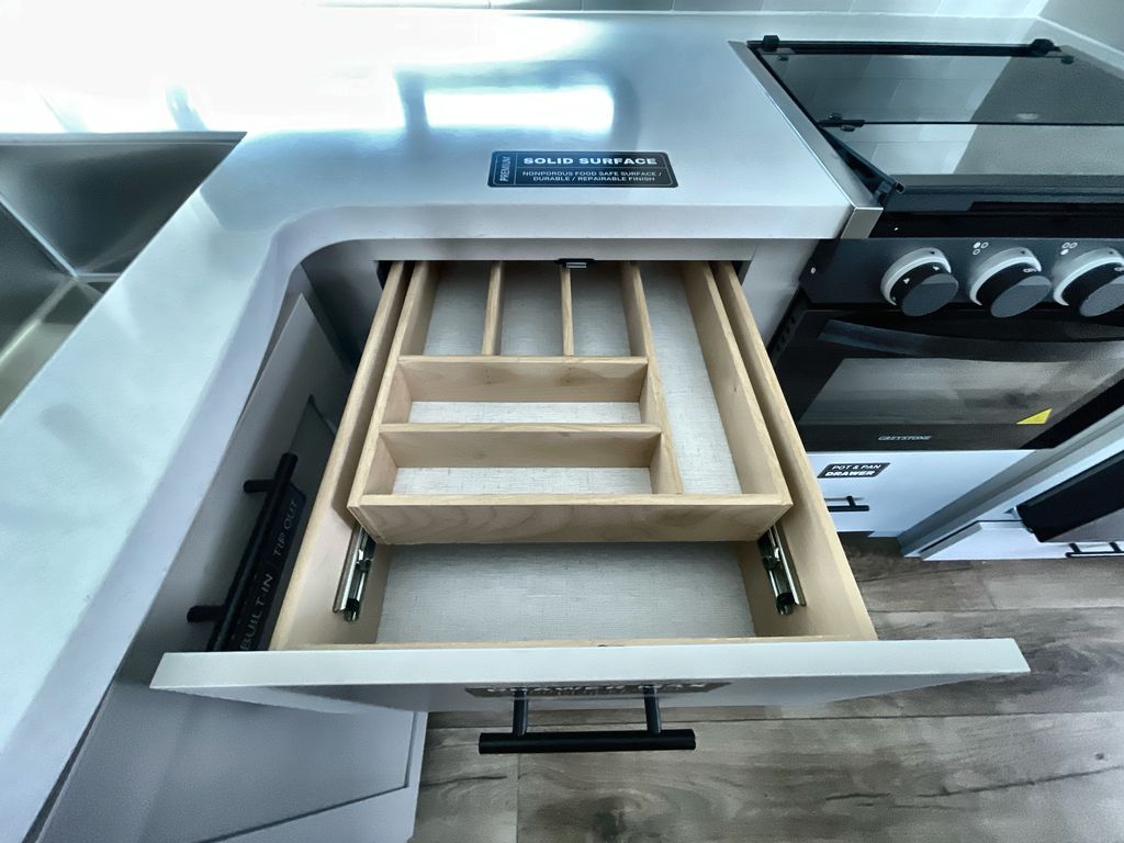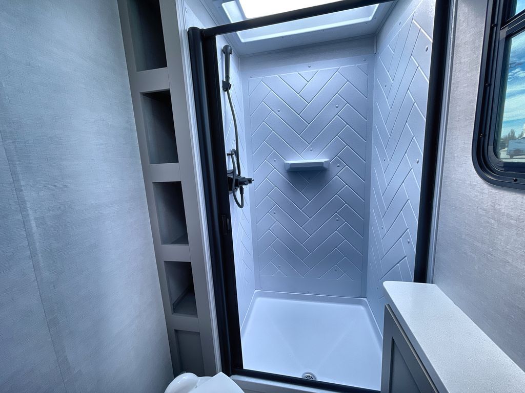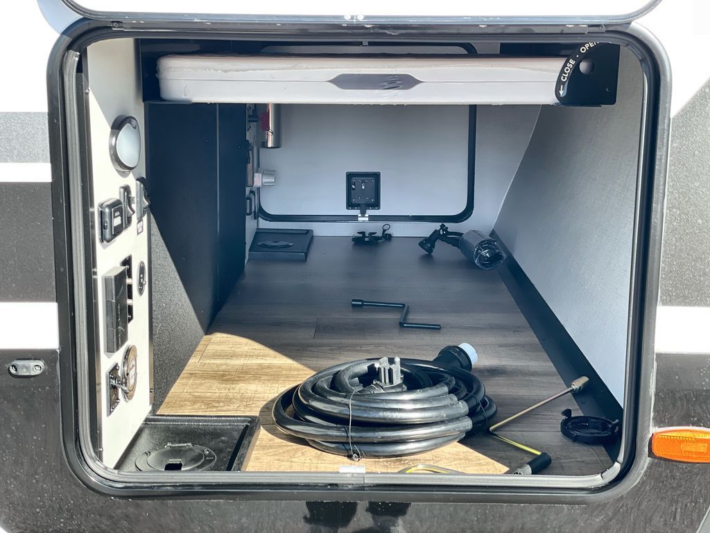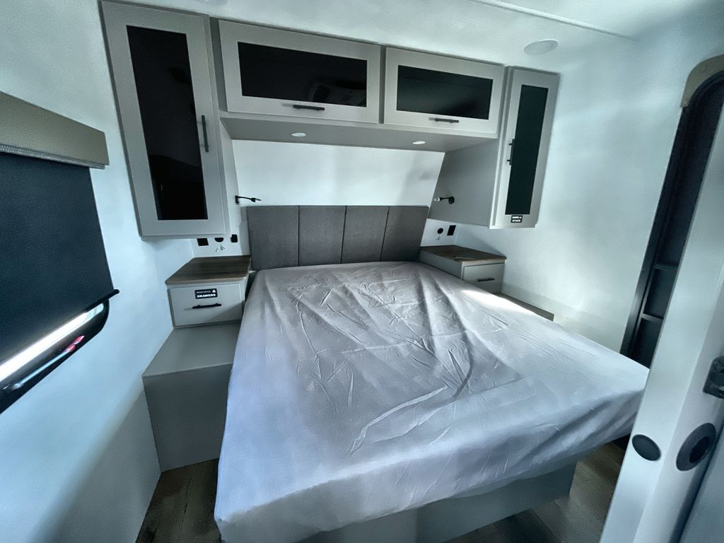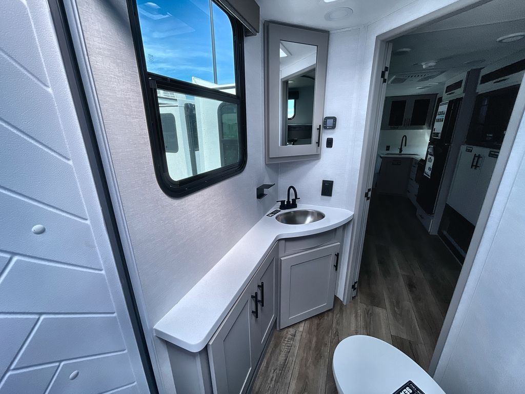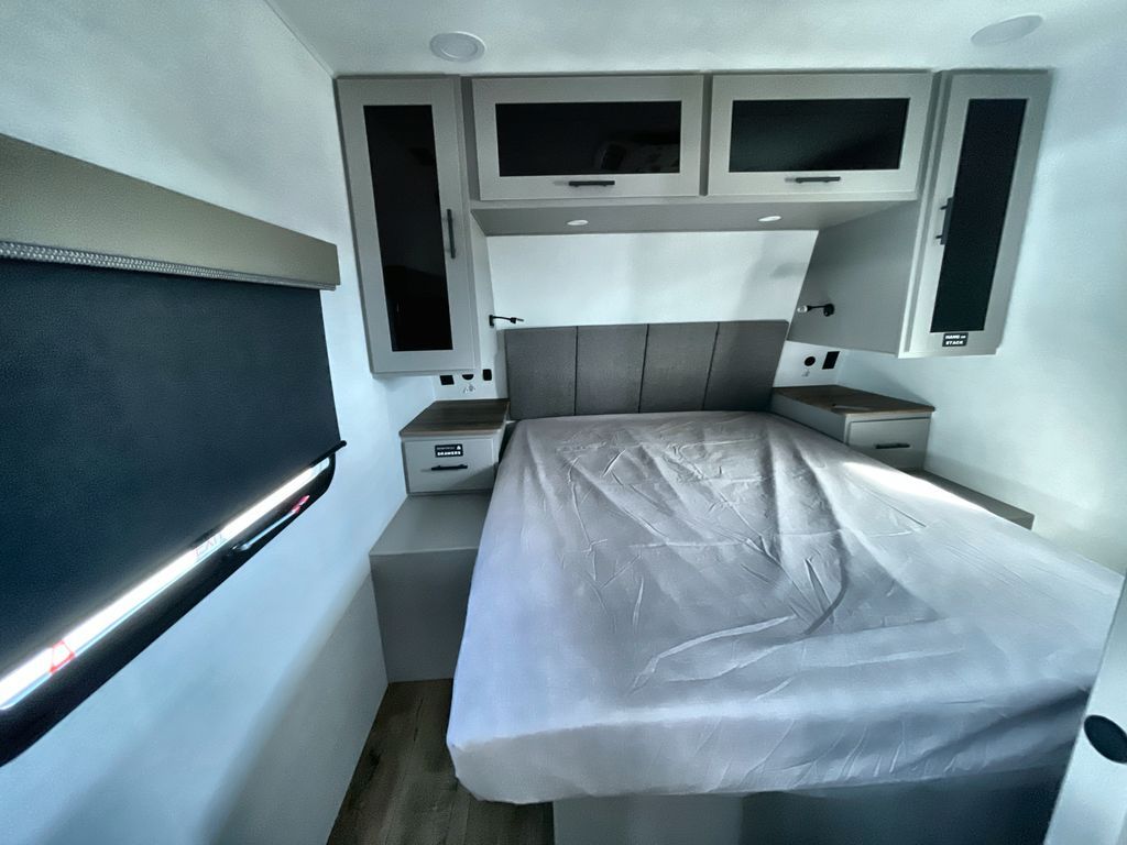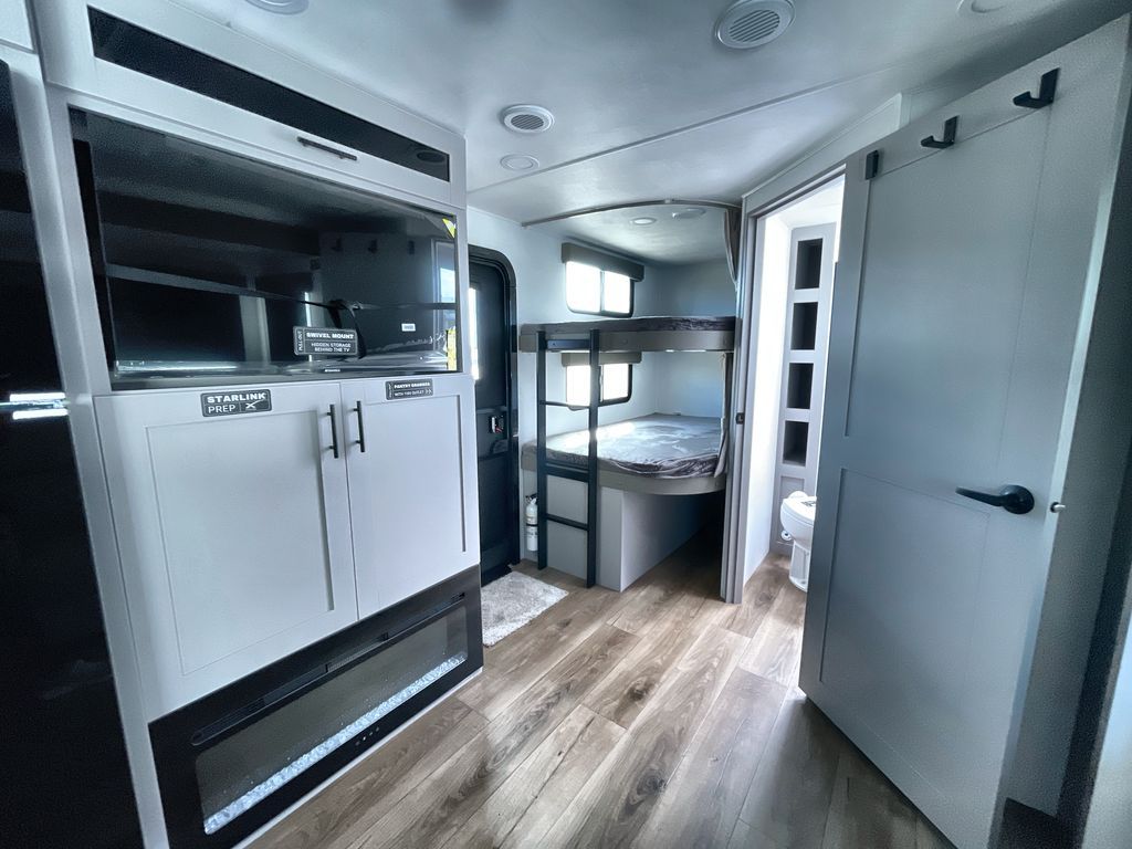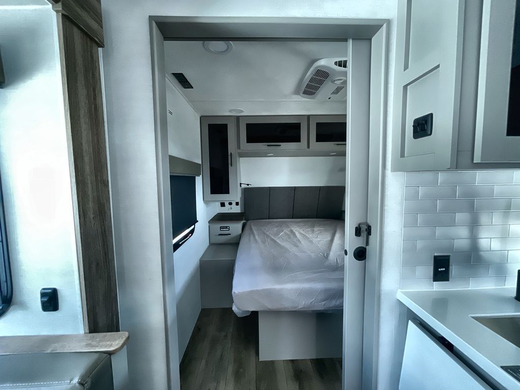 The perfect travel trailer for a larger family or one that enjoys traveling with friends! One large slide opens up the interior living space nice and features a U-shaped dinette and theater seating to provide plenty of seating for everyone. Enjoy the 40" HDTV opposite the seating for a movie indoors, and game night will be easy with everyone at the dinette which can also be converted for added sleeping if needed. The double entry doors will make loading and unloading simple and allows you to easily slip in and out of the private bedroom for a morning walk. You can easily prepare all of your favorite meals and snacks with the kitchen amenities provided inside. A three-burner range allows you to easily cook indoors, or you can enjoy cooking outside using the outdoor griddle/grill if you like. There is a 10-cu. ft. 12V refrigerator to keep all of your perishables and drinks nice and cold, plus a large sink for dishes and cleaning up, and there is also a flip-up counter extension for more prep space. You will also appreciate the rear corner bath featuring a 30" x 36" shower, vanity with sink, soft close porcelain toilet with foot flush, and linen cabinet for your towels.