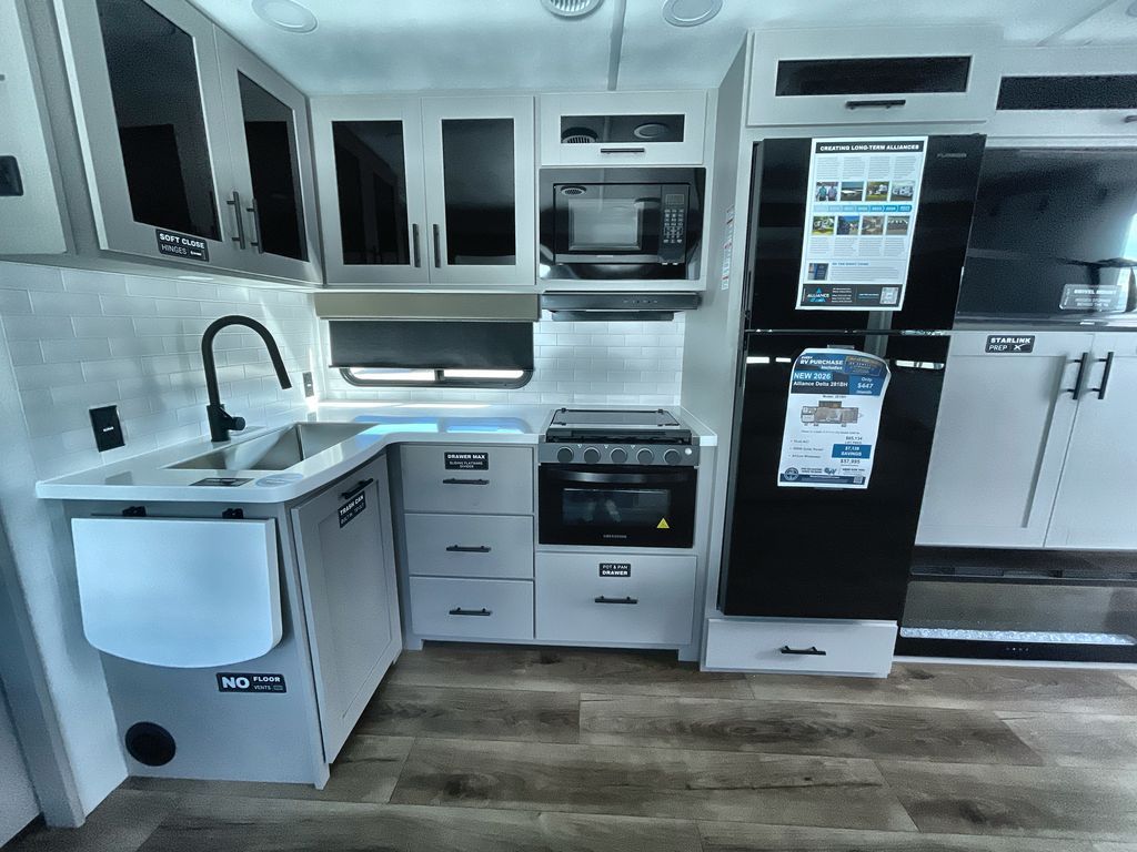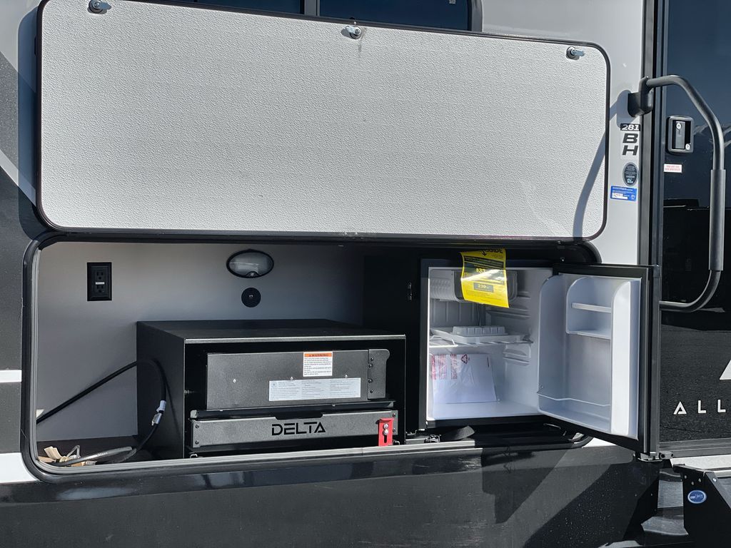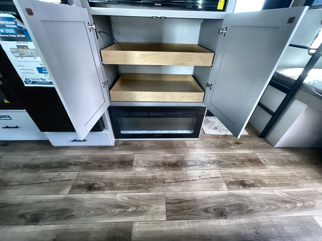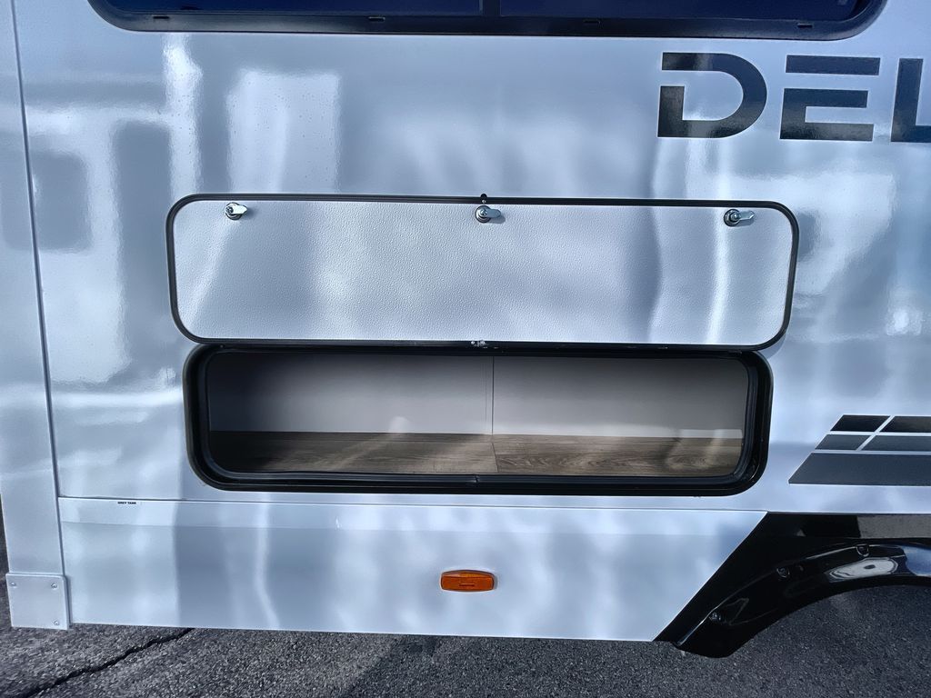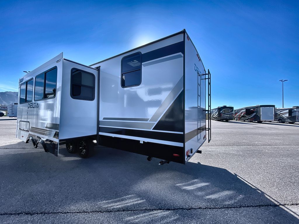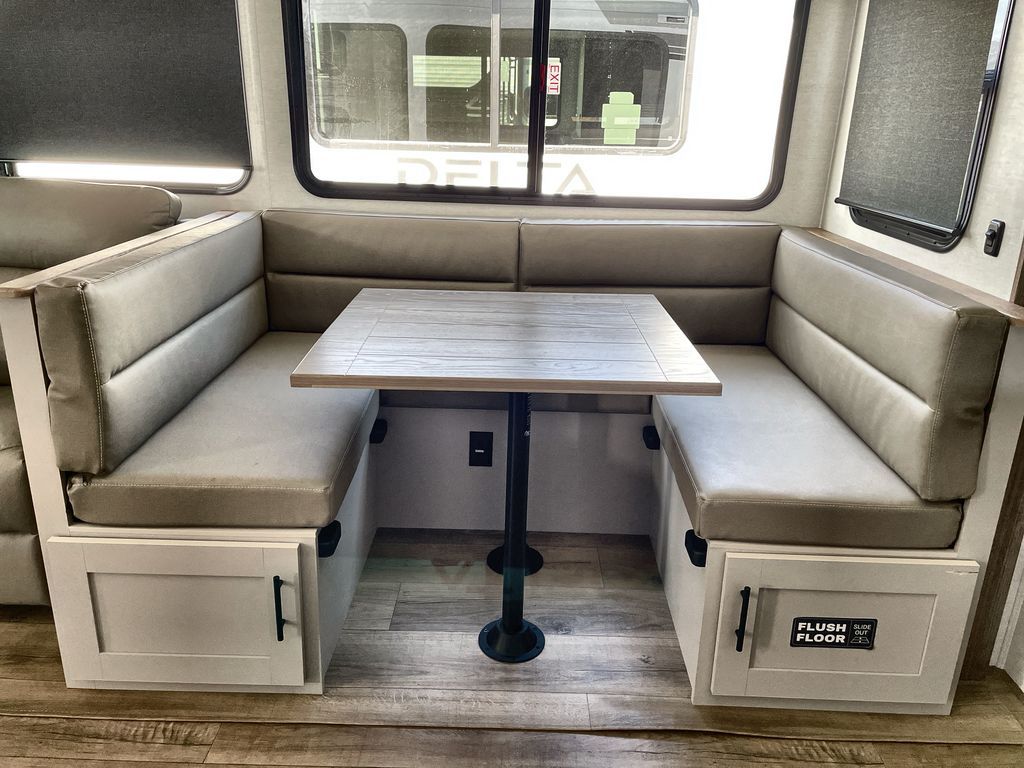 Form and function work together with every one of these Alliance RV Delta travel trailers! They are built with a walk-on roof with a seamless PVC roof covering, Mylar reinforced exterior seals, and a heated and enclosed underbelly to protect your unit. The commercial grade vinyl flooring will be easy to clean, and the oversized atrium windows throughout let in plenty of natural sunlight. With 62 cu. ft. of drop frame pass-through storage, you can bring along all of your essential camping gear plus it has USB charging for more convenience. There are many at home interior conveniences including a Bluetooth speaker, USB charging throughout, and even a pull-out kitchen trash can. Come find your favorite model today!