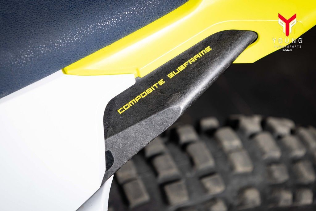 The carbon composite subframe is unique to Husqvarna Motorcycles and showcases advanced production technology and innovation. Using 70% polyamide and 30% carbon fibre, the 2-piece subframe has a total weight of just over 2.2 lb. With the help of computational dynamics, specific rigidity was engineered into the light and robust subframe, delivering outstanding handling and rider comfort.