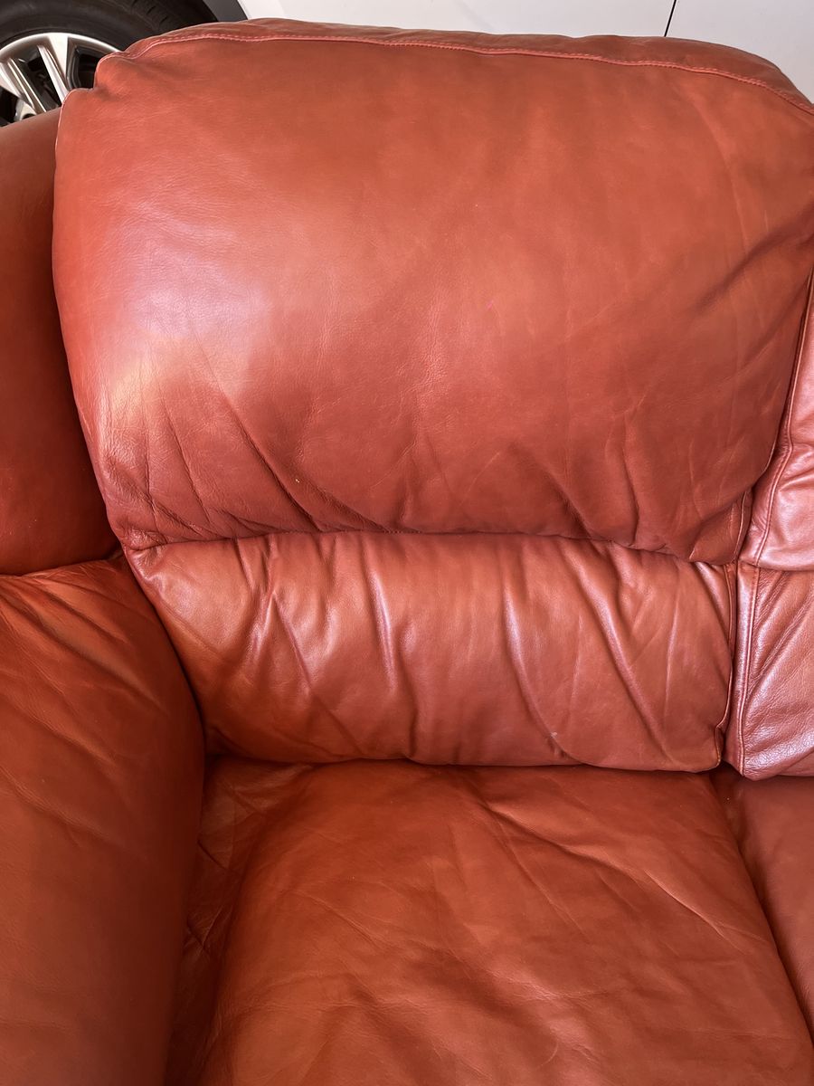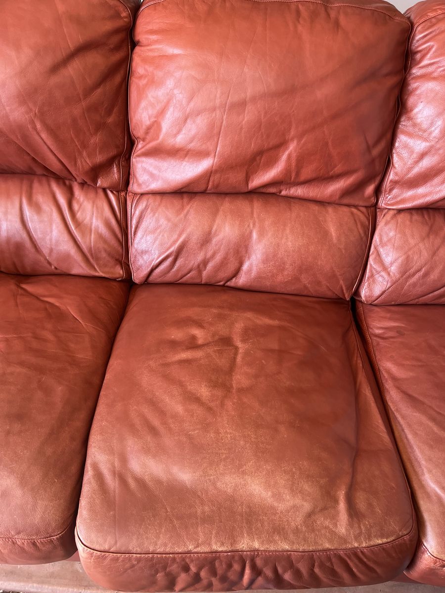 Leather Couch with ottoman asking $50. No delivery. Text if interested.
