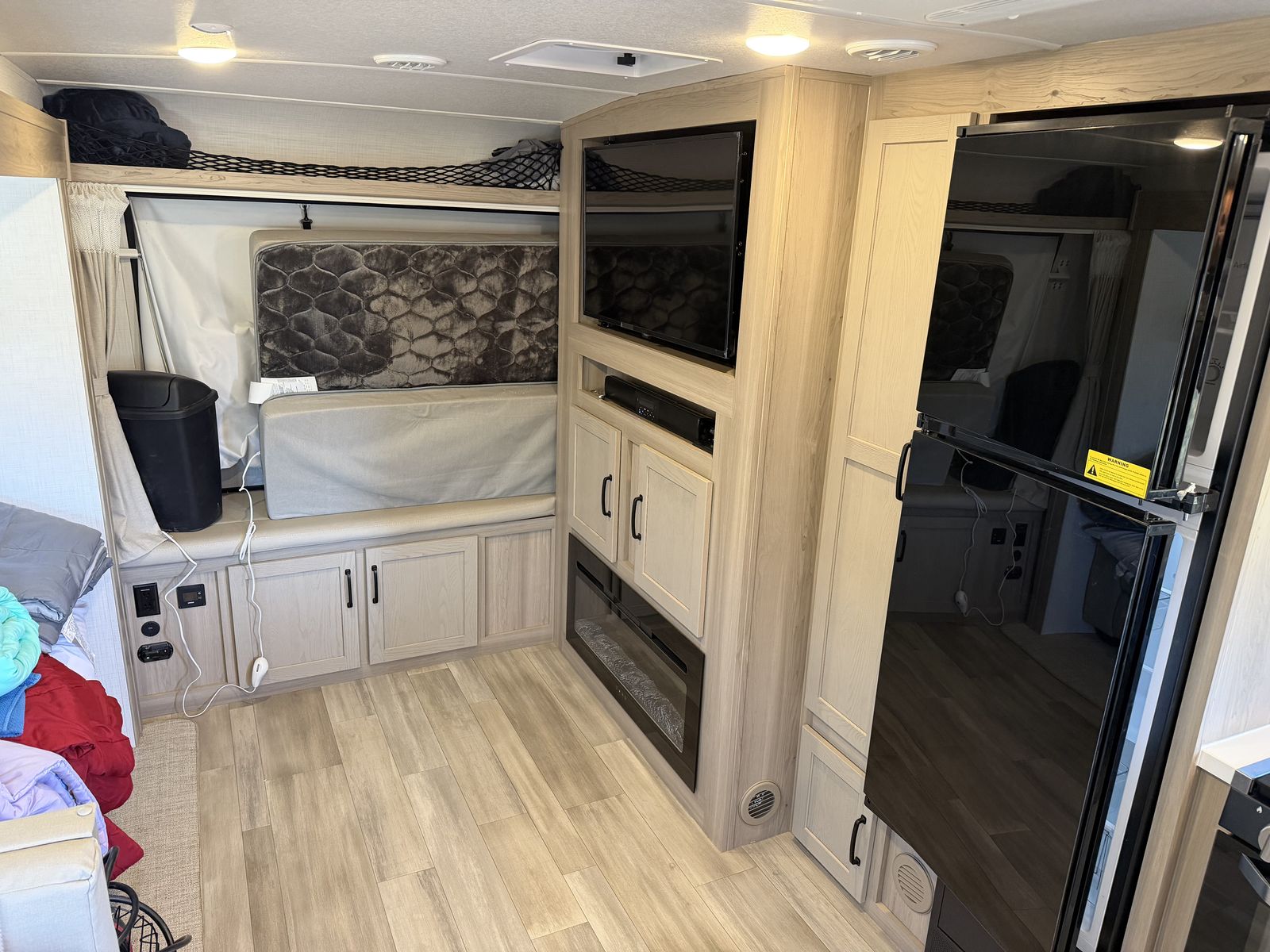 The large hybrid beds are fold outs, with tent fabric walls. It has a lot of floor space with the slide out.