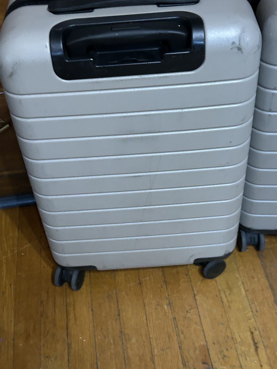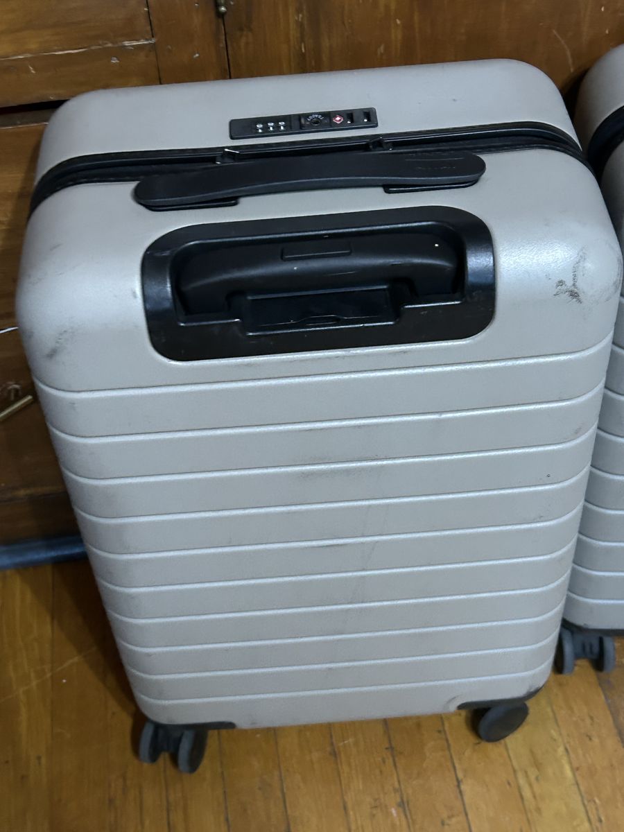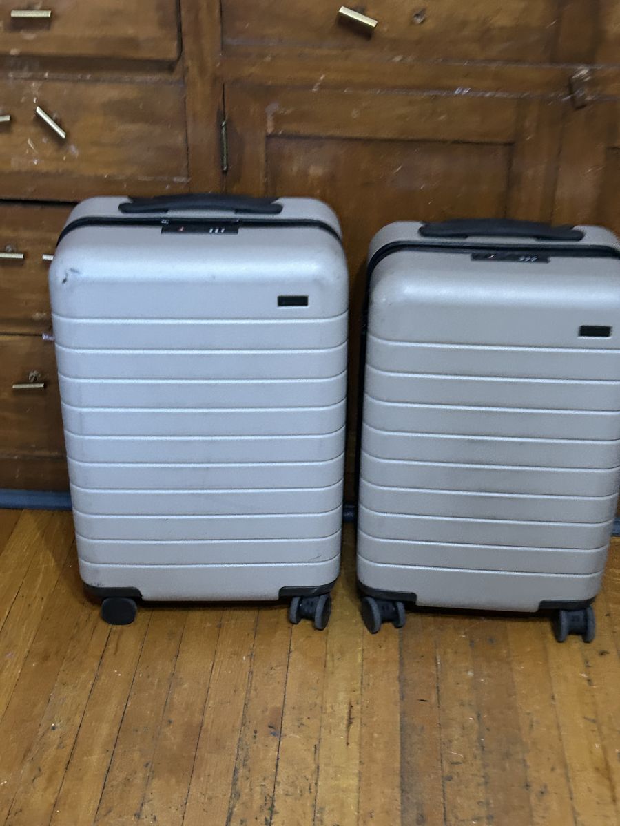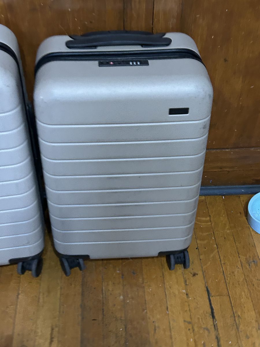 VenmoSet of two 2 Away Luggage light gray size: 21.7 and 22.7 carry on The Away Carry-On (approx. 21.7 x 14.4 x 9) is designed for international/strict regulations, while the Bigger Carry-On (22.7 x 15.4 x 9.6) No batteries included Some minor scratches but great condition
