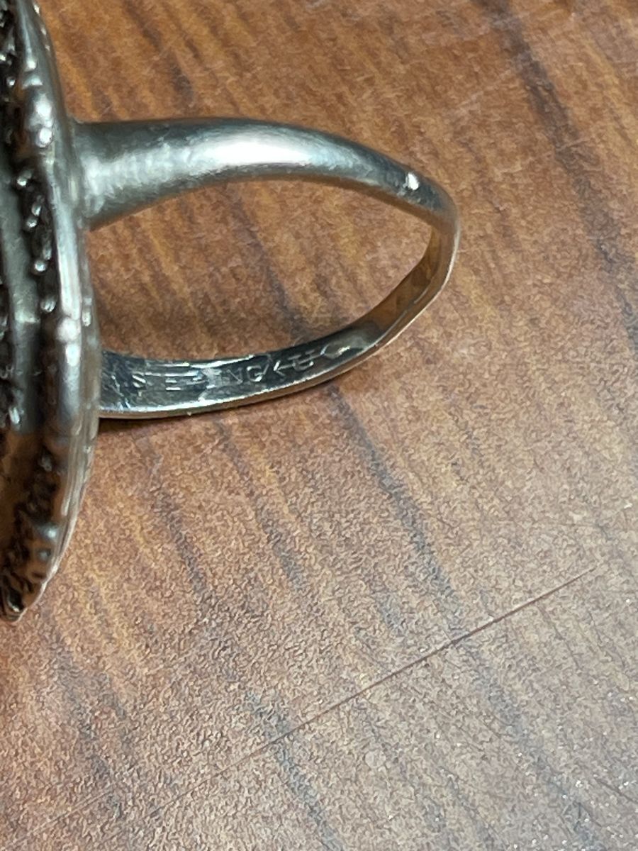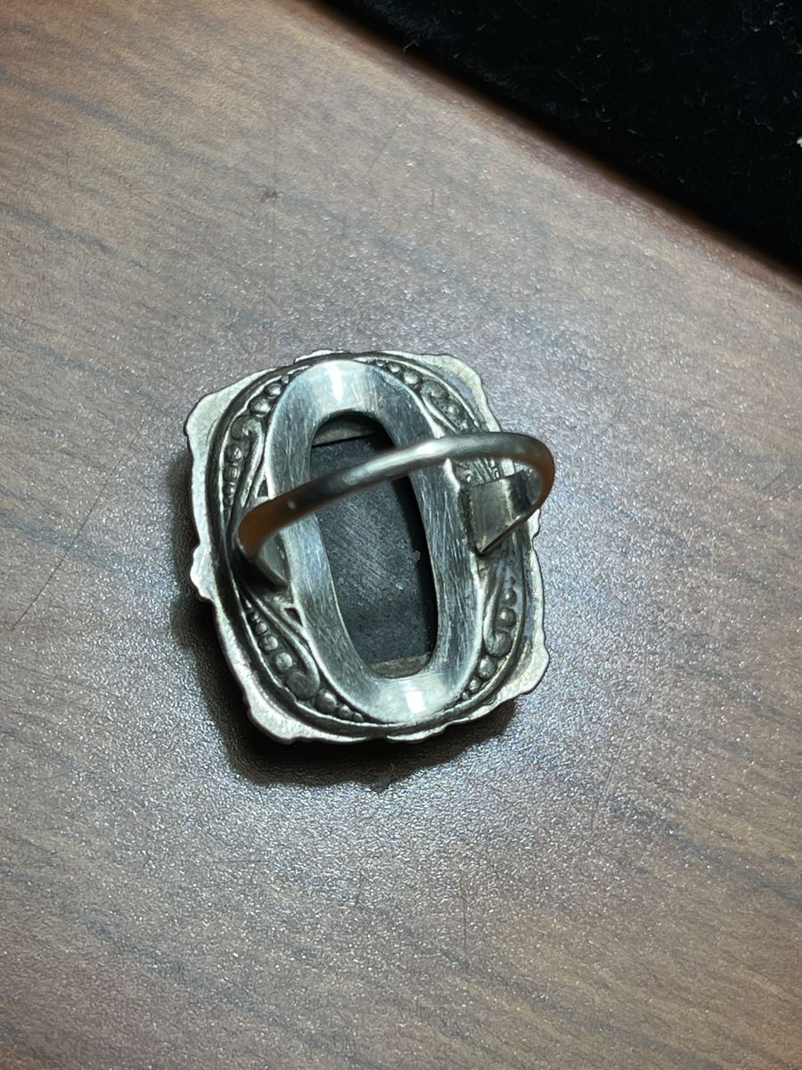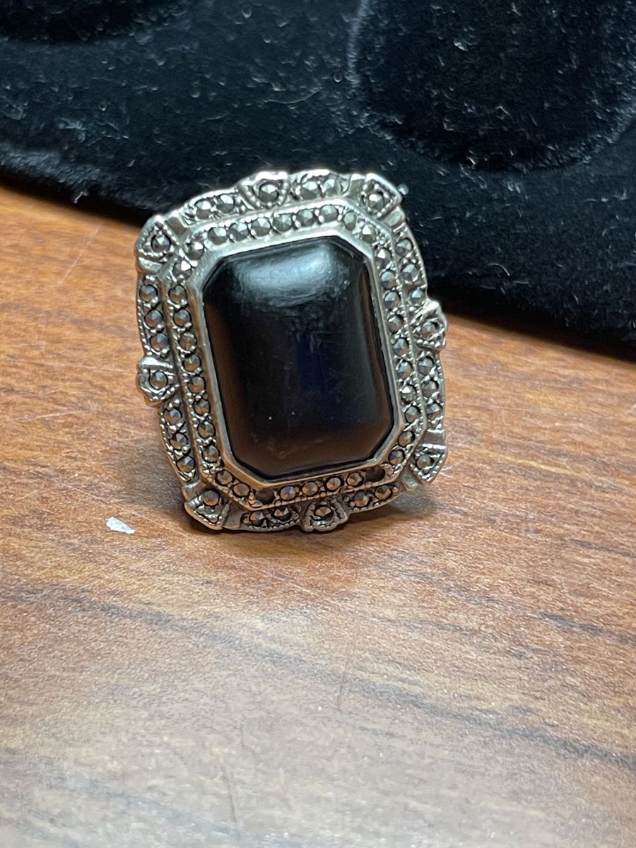 Vintage Art Deco Sterling Silver Ring Black Onyx Marcasite Size 6. Two of the Hematite stones fell off, hardly noticeable but can be fixed. Beautiful piece for the lovers of vintage jewelry, big statement piece. Definitely a conversation starter