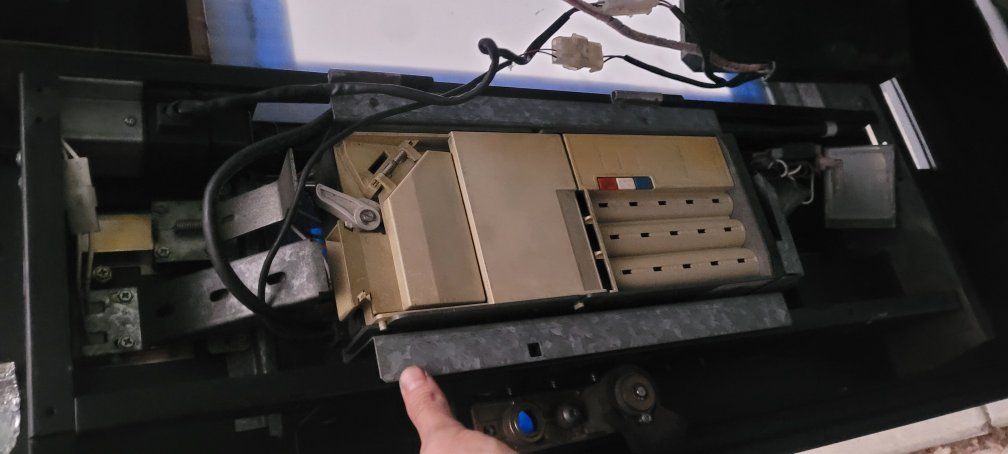 older soda vending machine made by the Vendo company. works amazing every button works. it has a padlock on the side. still remodeling it. Takes quarters. Cash thing needs to be fixed.