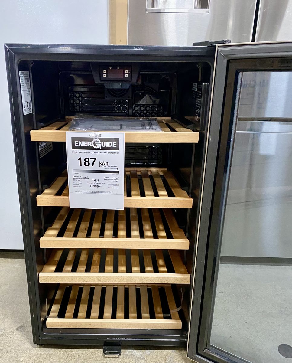 GE 19 Inch Beverage Center with Stainless Steel Door w/ Glass Window, 5 Adjustable Oak Shelves, Electronic Controls, LED Interior Lighting, Door Lock, 125 Can / 31 Bottle Capacity, 4.1 cu. ft. Capacity, ADA Compliant and ENERGY STAR® certified
