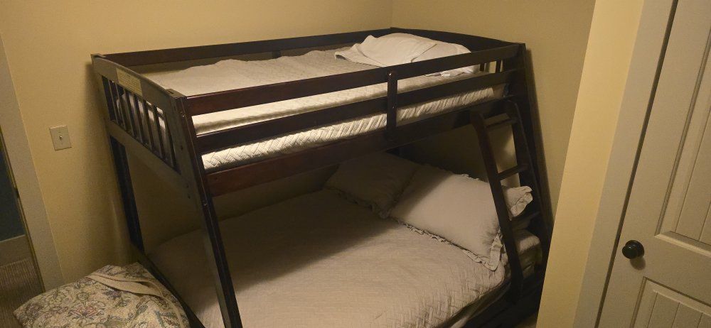 VenmoSee Pictures: Bedroom Set Full Size with two matching nightstands (in separate pucture) incl IKEA Mattress $150. Gas Stove and matching fridge $250. Bunkbeds "like New and Solid High Quality " $350 includes mattresses hardly used. Nice Work Bench $75. High-End Pool Table w/Cues Balls etc $450. Glass Office Desk and Chair $100. 2 Retro Vintage File Cabinets $500 ea. Misc Patio Furniture $250. Misc yard tools, rakes, shoves, trimmers, storage chest $250. Misc Garage Shelves $150. Like New Craftsman Snow Blower $450.