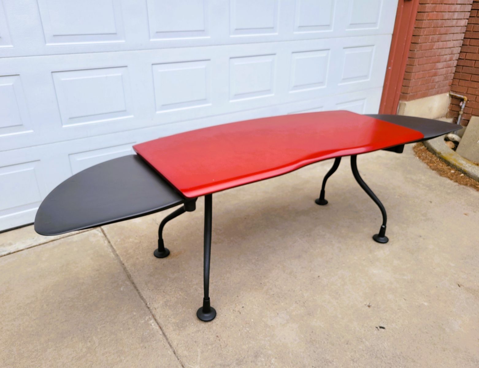This is a stunning Herman Miller Kiva winged desk in exceptional shape. Very little wear. The wings fold out and in as they should. Sturdy legs. Very rare. Wonderful addition to any mid century collection.