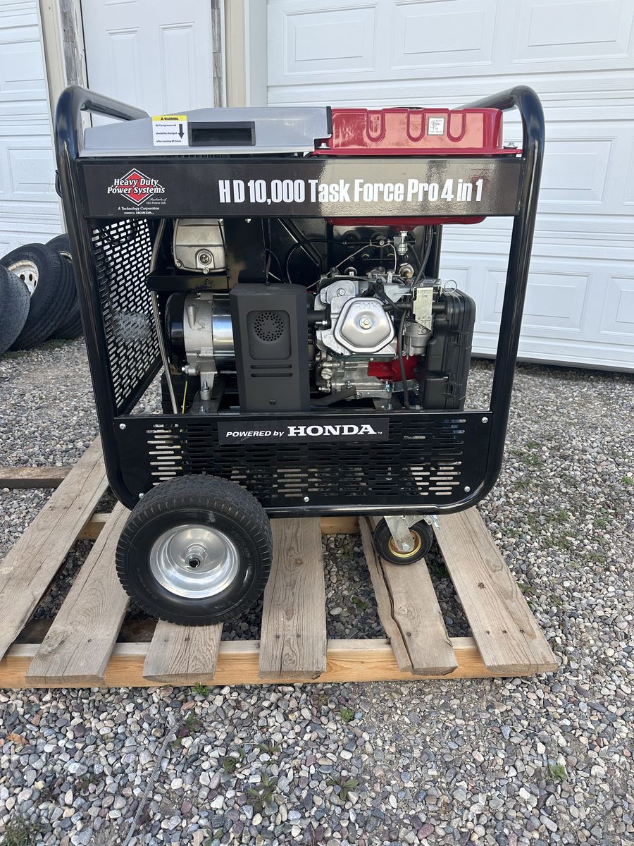 VenmoModel HD 10,000 Task Force Pro 4 in 1, Honda GX390 gas powered generator, air compressor, pressure washer and DC 12v 8.3A battery charger. Commercial grade unit, great for either commercial or home use.