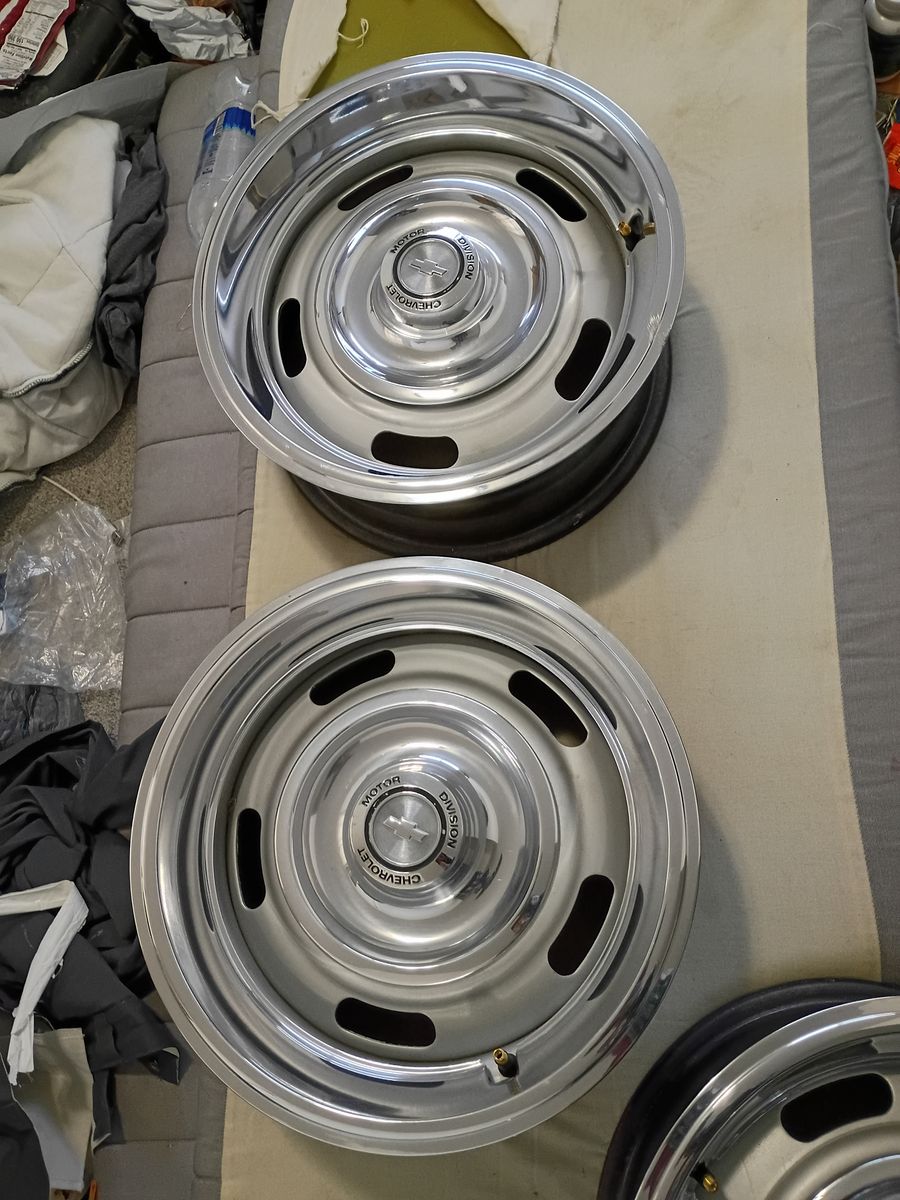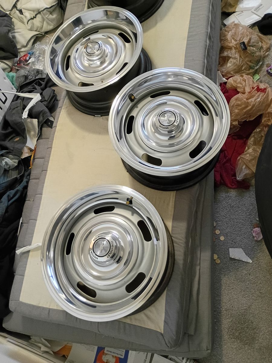 Rally rims 15 x 7. Excellent overall condition. Original old school Chevrolet rims. Message me if interested. Would be great for a 60's or 70's car...El Camino, Nova, ect. 500 dollar bargain deal. Family emergency offering bargain deal