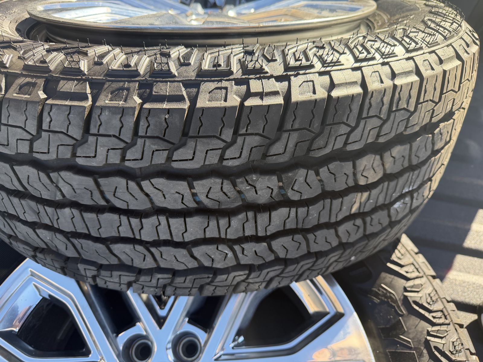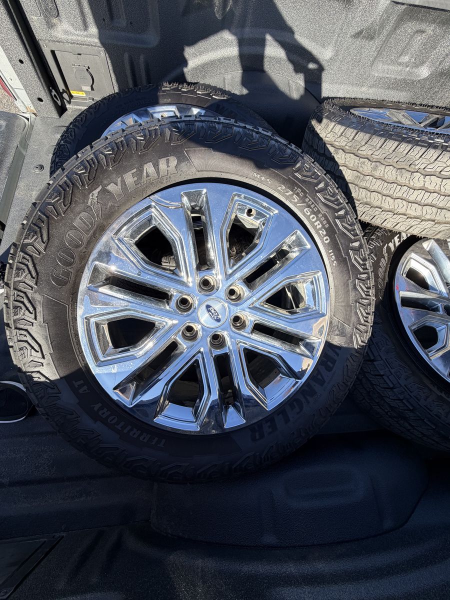 Alloy wheel style. '20 chrome F-150 Lariat wheels. Bolt pattern would be 6x135, tire size is 275/60r20.