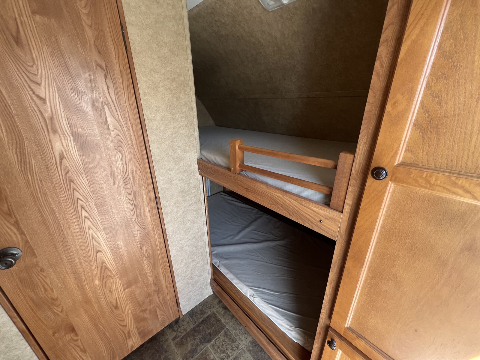 Bunkhouse that sleeps 7. 32' long and only 5,700 lbs with dual entry. TV and lots of storage as well as a storage rack on the rear of the trailer. Our technician will go through the trailer and make sure everything works.