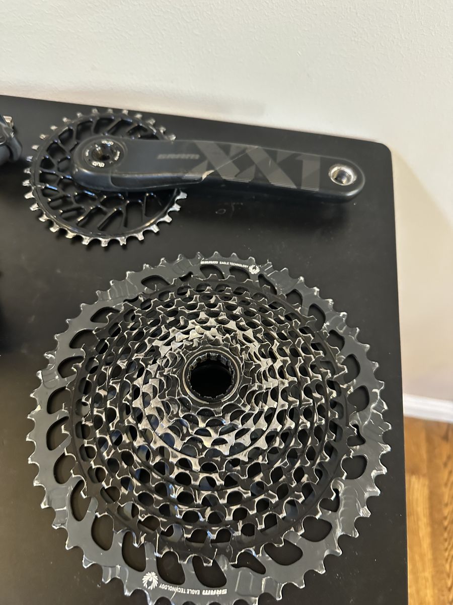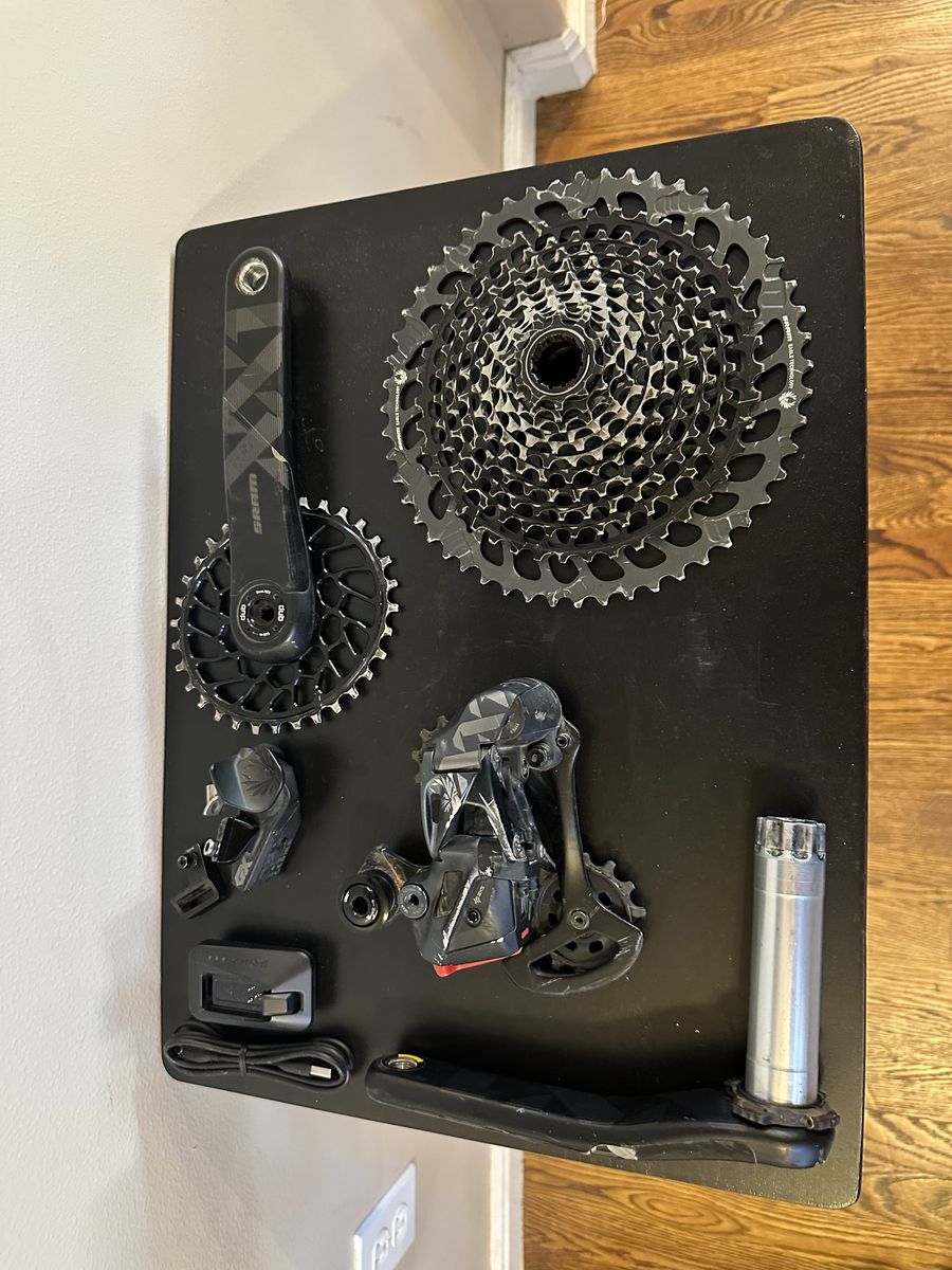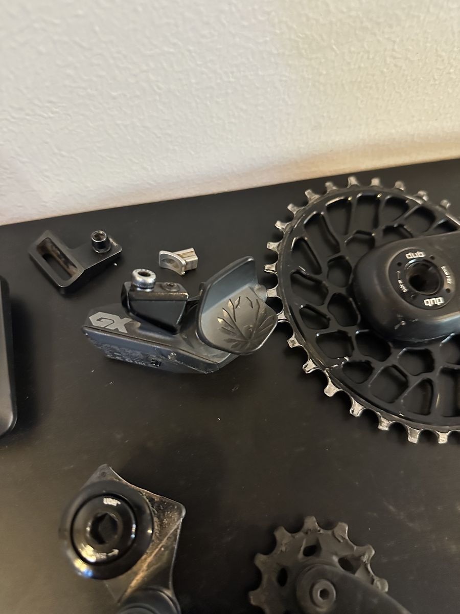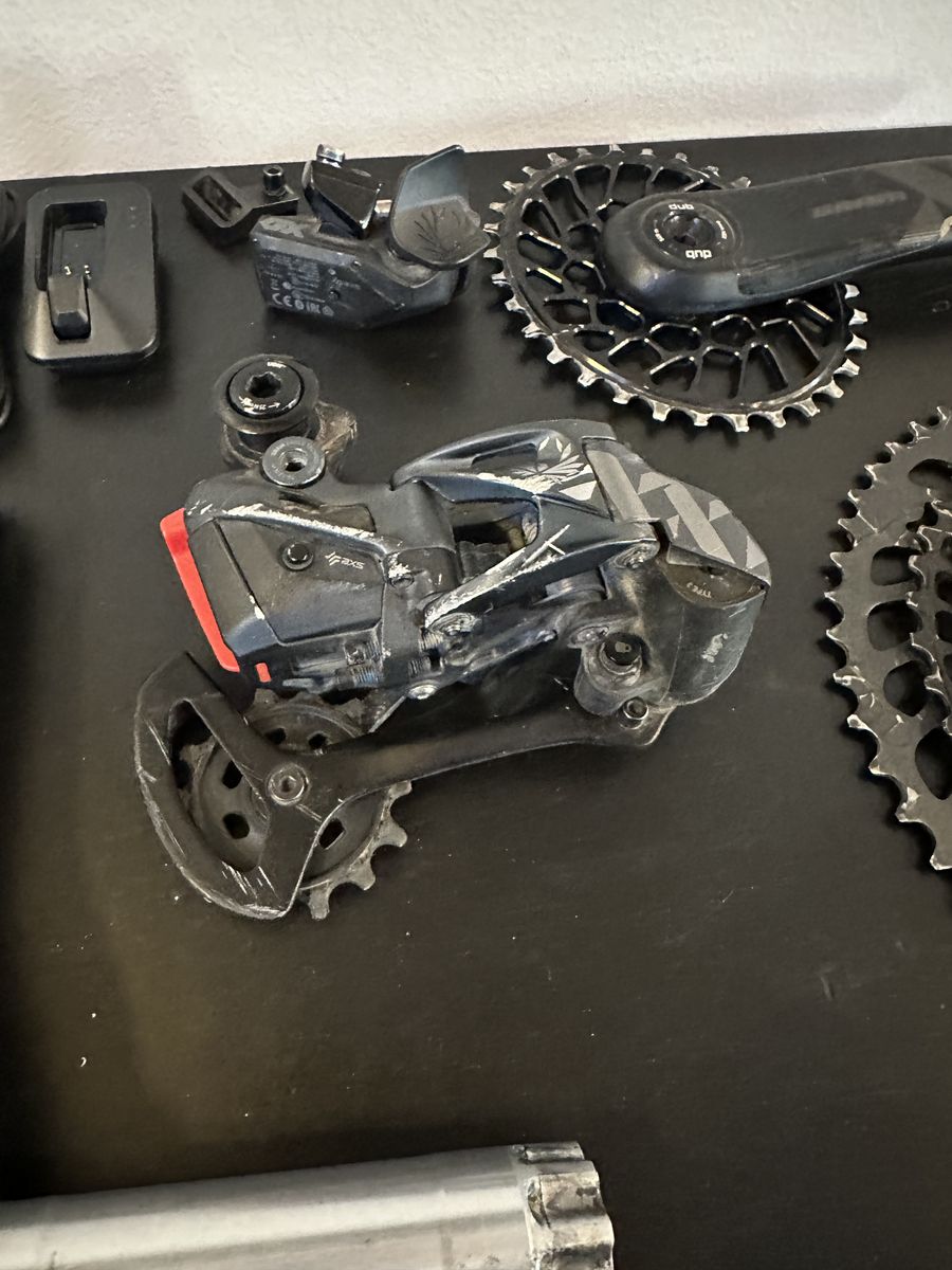 VenmoI bought this groupset last spring (March 12th 2025), and only rode it for about 7 months (September 24th 2025). I did crash and kind of scratched up the derailer, but it still works great! The cranks are carbon. It comes with an oval chainring that’s not just performance enhancing, but it also gives your bike a unique look that will set you apart from the rest of your riding buddies! I had the whole dirvetrain washed in an ultrasonic machine. (It basically cleans it so much that it returns it to a brand new cleanness/look.) (The charger is brand new.) It doesn’t come with a battery, but I probably could throw one in for an extra $50.