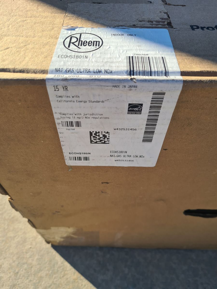 VenmoBrand new Rheem IKONIC 180k btu, 10.1 GPM Super High Efficiency Indoor Natural Gas Tankless Water Heater.