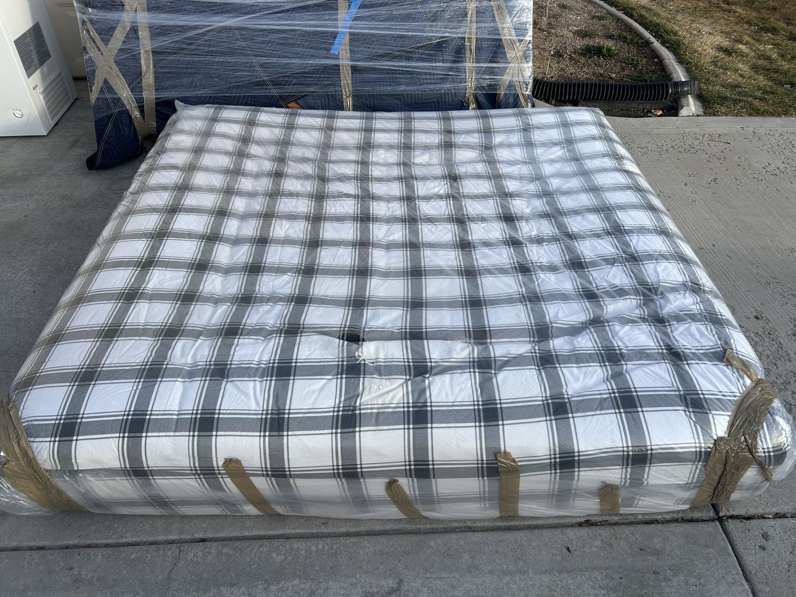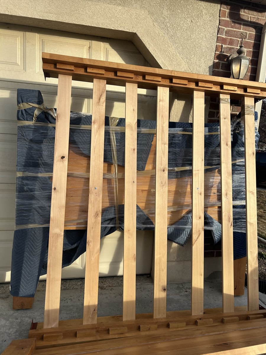 We are selling this California king bed set.This is a beautiful set in like new condition.Includes solid wood Headboard, Footboard, Base, and Boxsprings. Unsure of the mattress brand as it is currently wrapped and covered but guaranteed to be a very good brand. We simply don’t have the space for it. Message with questions, must pick up and have a vehicle large enough to transport. Asking 250 obo, easily could find a similar set for over 1000 online. Willing to possibly deliver near Eagle Mountain for 75.00-100 extra depending on location.