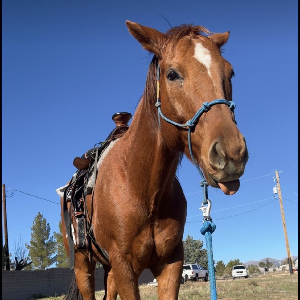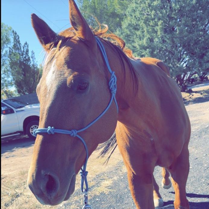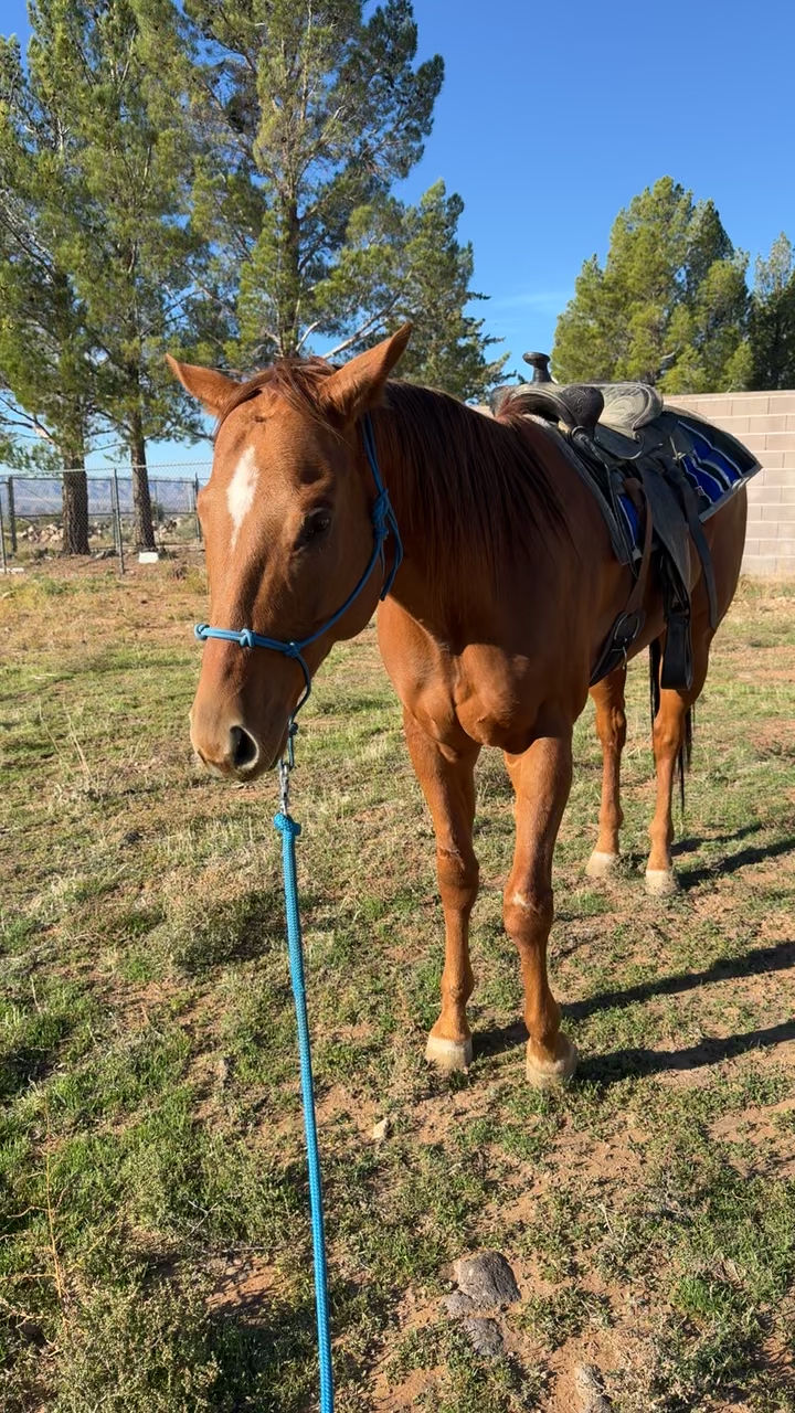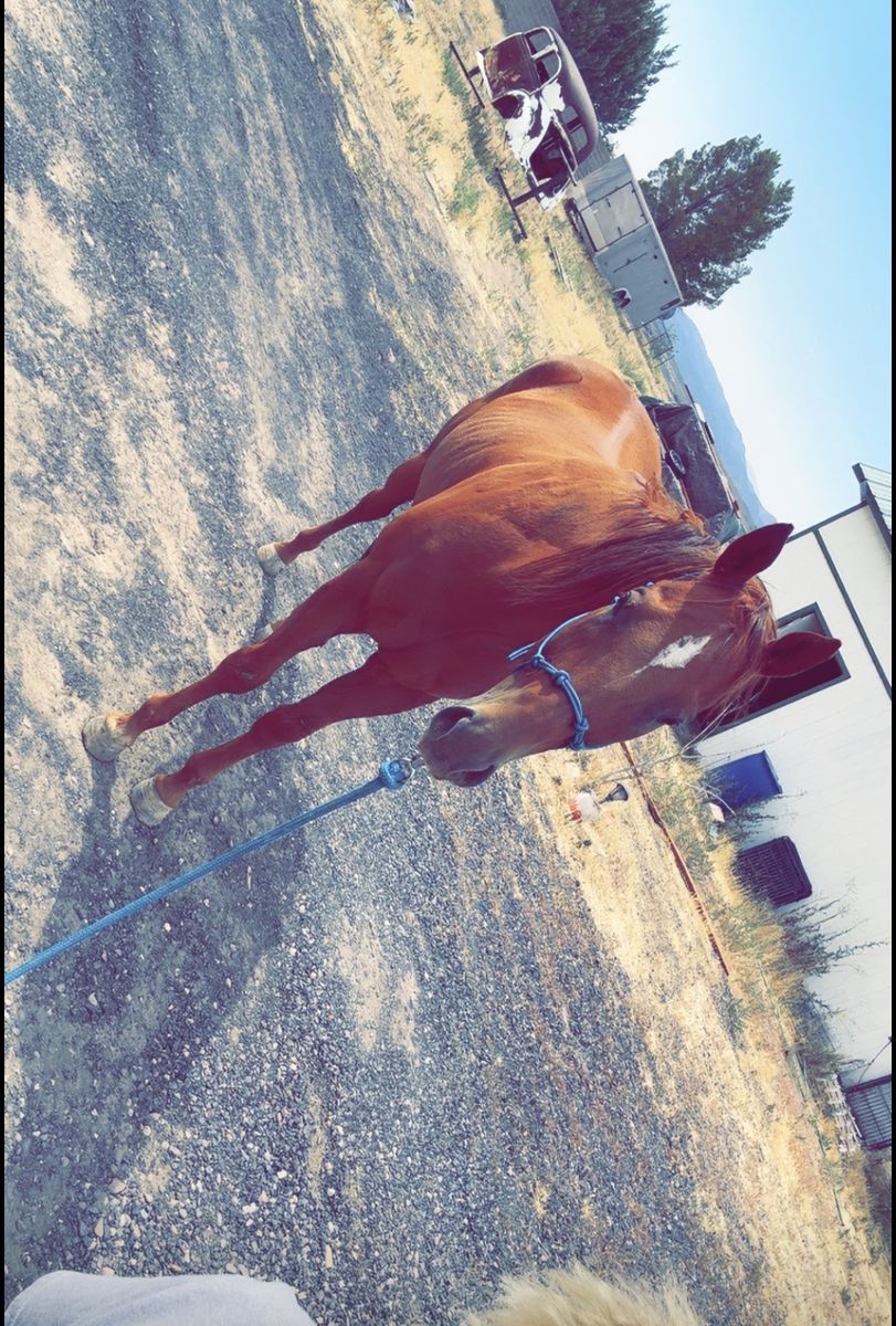 ApplePayI’m looking for a good home for my boy Coolio. Thoroughbred/Quarter Horse gelding. 17.5 hands tall, really is such a good looking horse! He loves hanging out with his people. I’m so sad to post this but I have one too many horse projects at the moment & he doesn’t seem to got on very well with my other horses. He has a lil scaring on his knees from a run in with a fence when he was younger but it doesn’t seem to affect him at all. He loves to get out and go. He has about 10-20 rides on him so I’d recommend an experienced rider. Loads into a trailer. Picks up all four feet and he has all the ground work down packed just needs more rides and experience. 875$ obo js want him to go to someone who loves him like I do!
