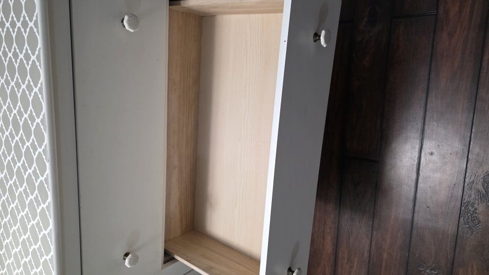 This is a nice 6 drawer dresser. we took the minor out and jus hang this mirror on the board. 66Lx18Dx36H