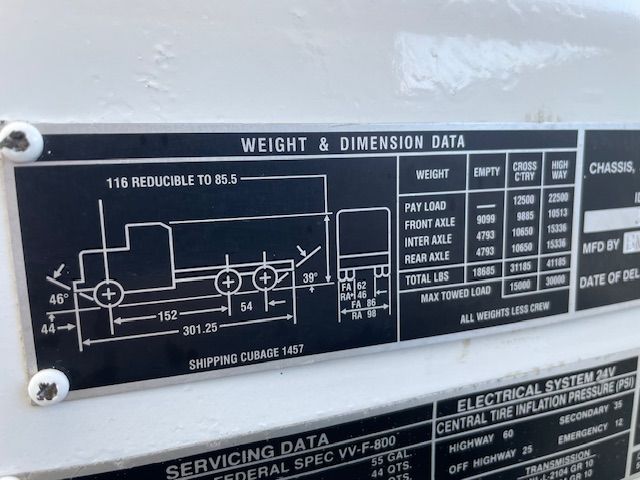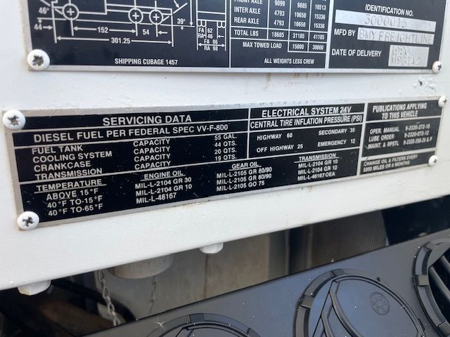 This former military truck would make a great farm or ranch truck, parade truck or any type of off-road job. It is a 6 x 6 (three axles, six wheels, all of which are powered). Would be great for a remote construction project that is hard to get to. It has a Cummins NTC 240 HP engine (24K original Miles) with a 5-speed automatic transmission. There is a transfer case that locks in the 6 x 6 power! PTO with a front winch and a separate AC unit. The maximum speed that is labeled on the dash is 63 MPH. Ready to hit the road. We can pick you up at the airport. Call with any questions!!