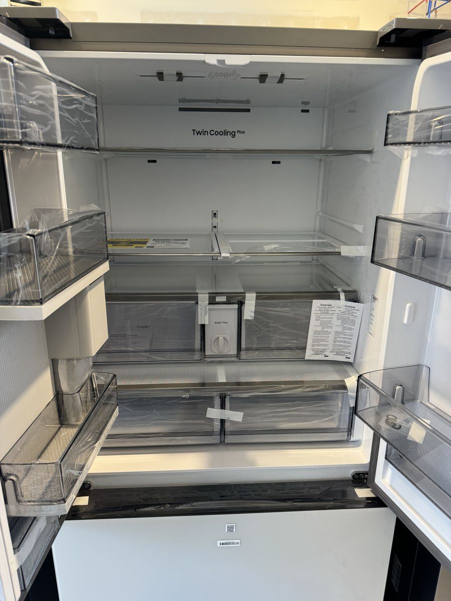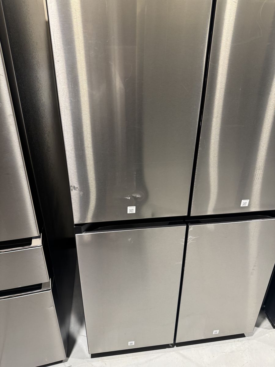 New scratch and dent Samsung 29 cu. ft. Bespoke 4-Door Flex Refrigerator with Beverage Center- Models RF29DB9600QL ($1,400), RF30BB660012 ($1,500)