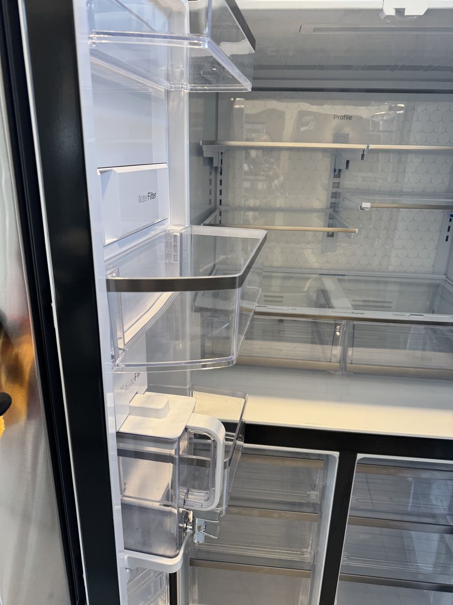 New scratch and dent Café 28.9 cu. ft. 4-Door French Door Refrigerator with Dual-Dispense AutoFill Pitcher and Convertible Drawer- Model CGE29DP2TS1
