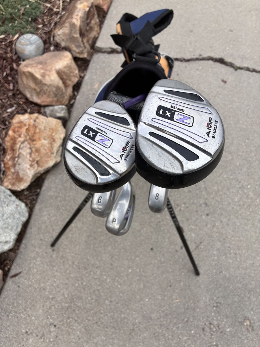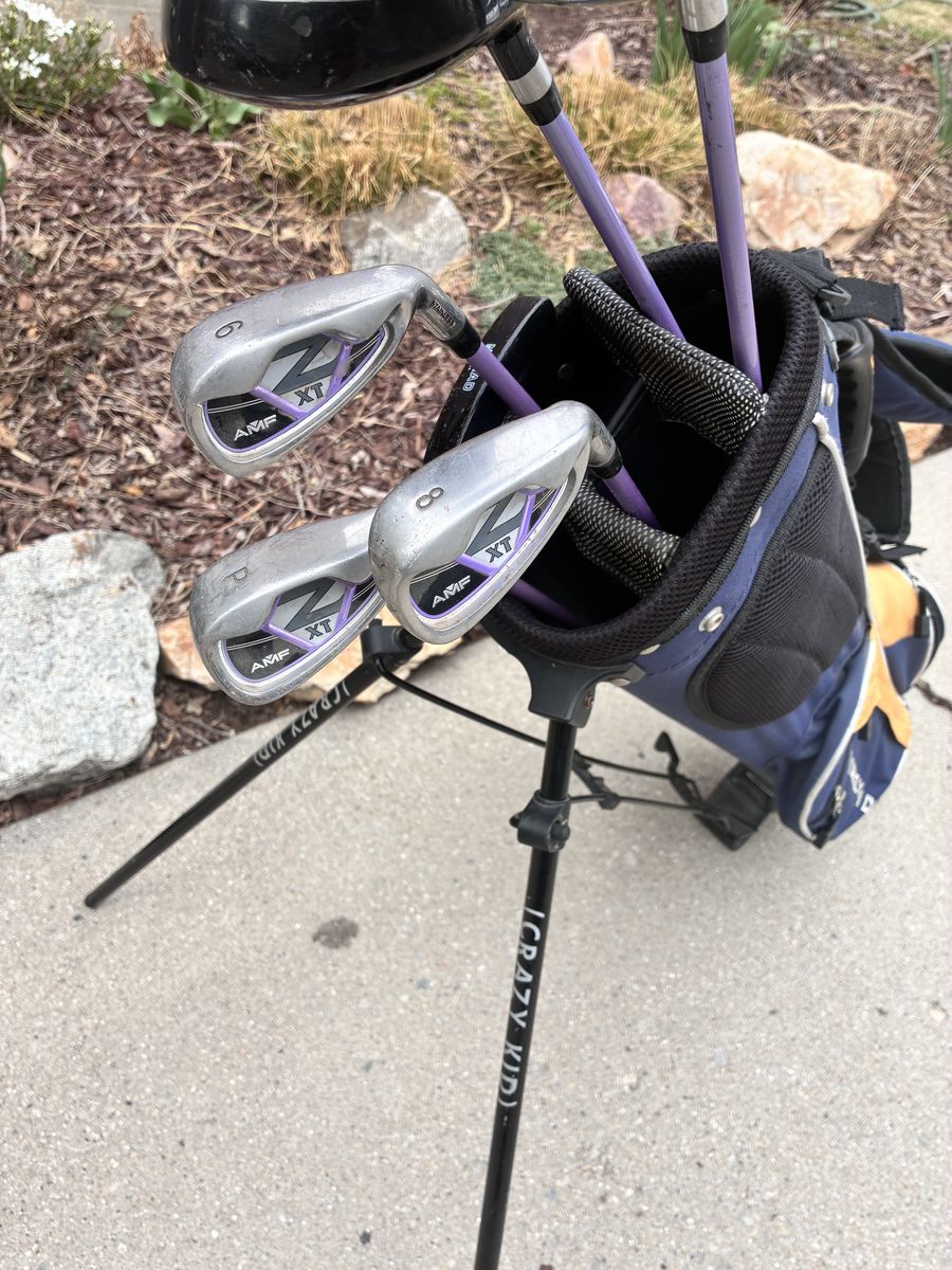 VenmoNice set of Junior golf clubs for sale. Good for a junior in the 4.5 to 5 ft range. Set includes AMF-driver, fairway wood, long, mid, short irons, a putter, Dunlop stand carry golf bag, golf balls, tees, ball markers etc. Ready to take to the range or course near you. Text Lorin 801-386-0027 if interested