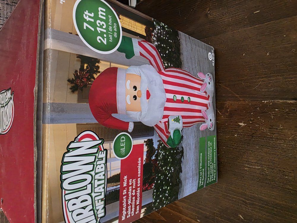 VenmoSanta- Nightshirt St. Nick Airblown Inflatable stands 7 foot. Lights up with LED lights.