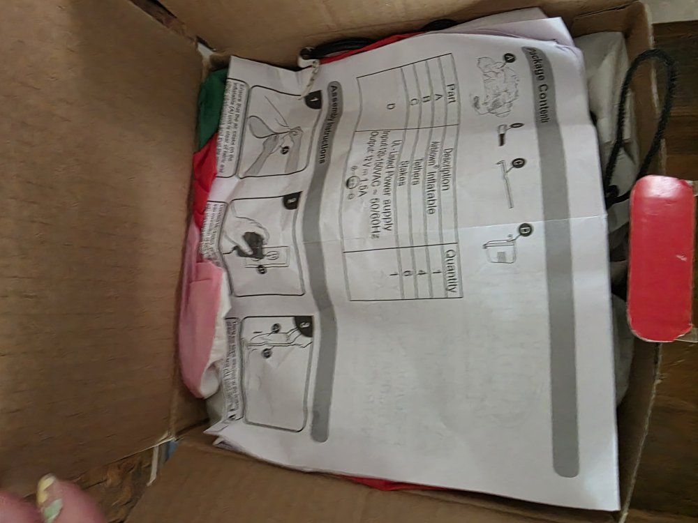 In great working condition. Used several times outside. Nothing is missing or wrong with the Inflatable.
