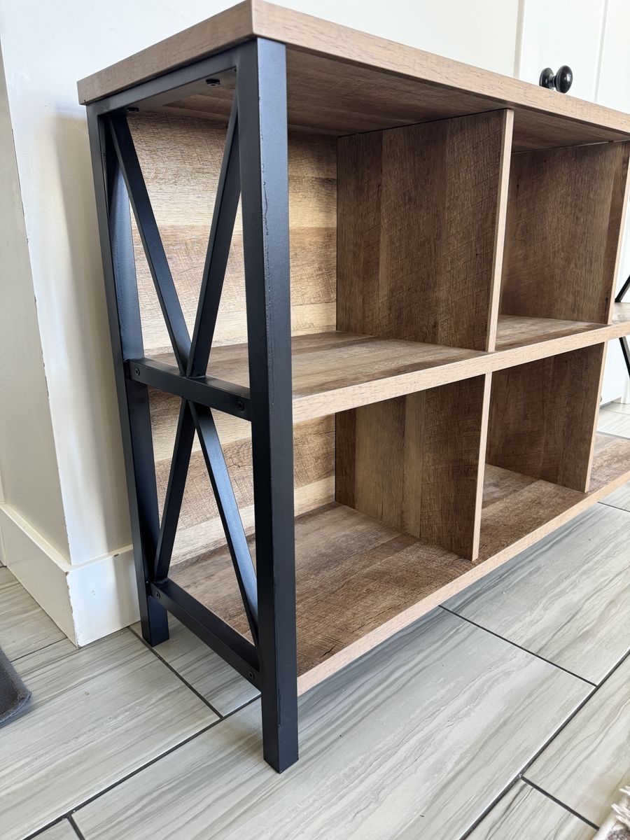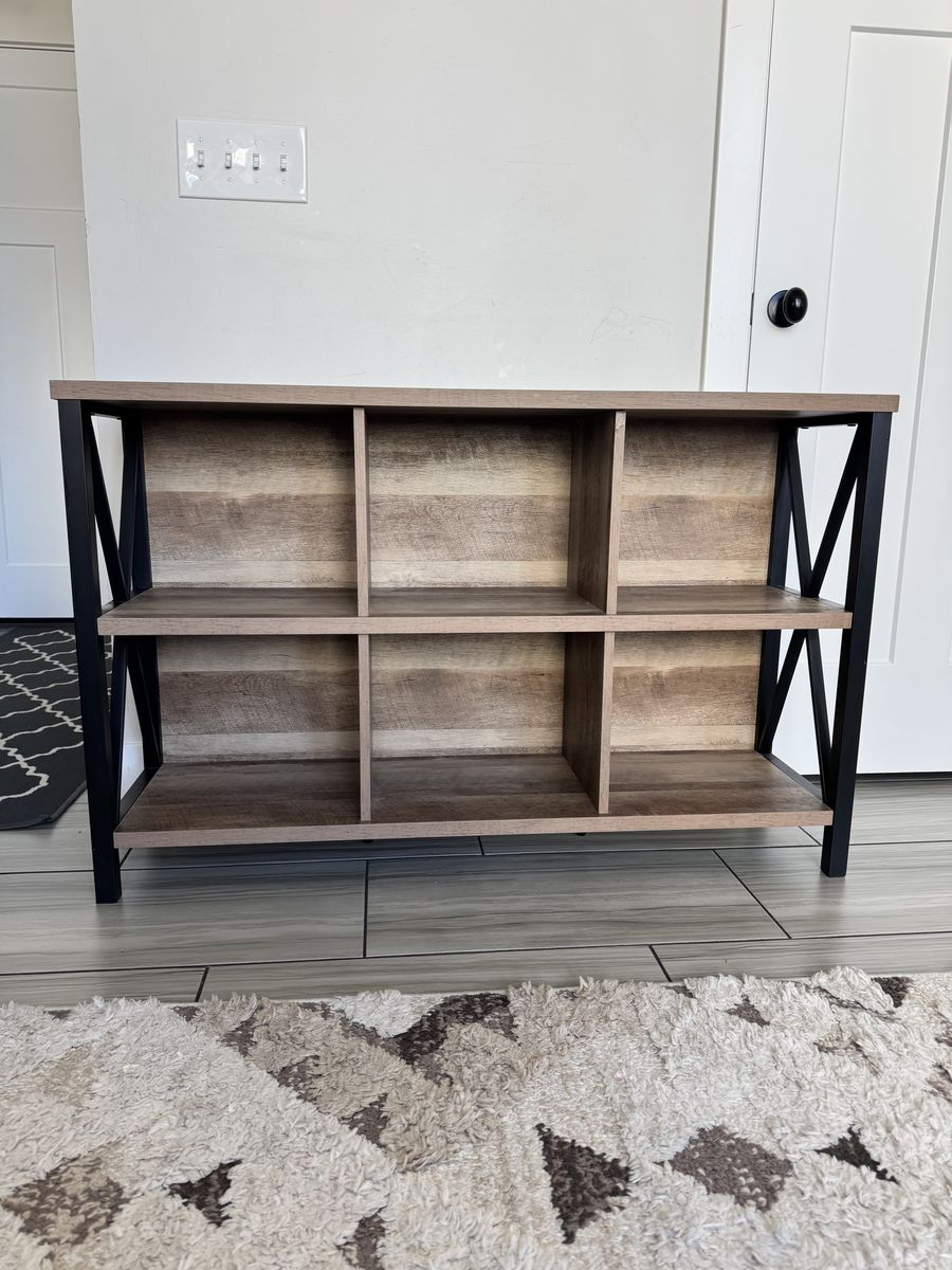 VenmoFATORRI 6 Cube Storage Organizer with Shelf, Long Wood and Metal Cubby Bookcase, Industrial Horizontal Bookshelf (Rustic Oak, 47 Inch) Little damage on top due to moving but like new