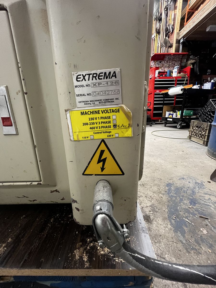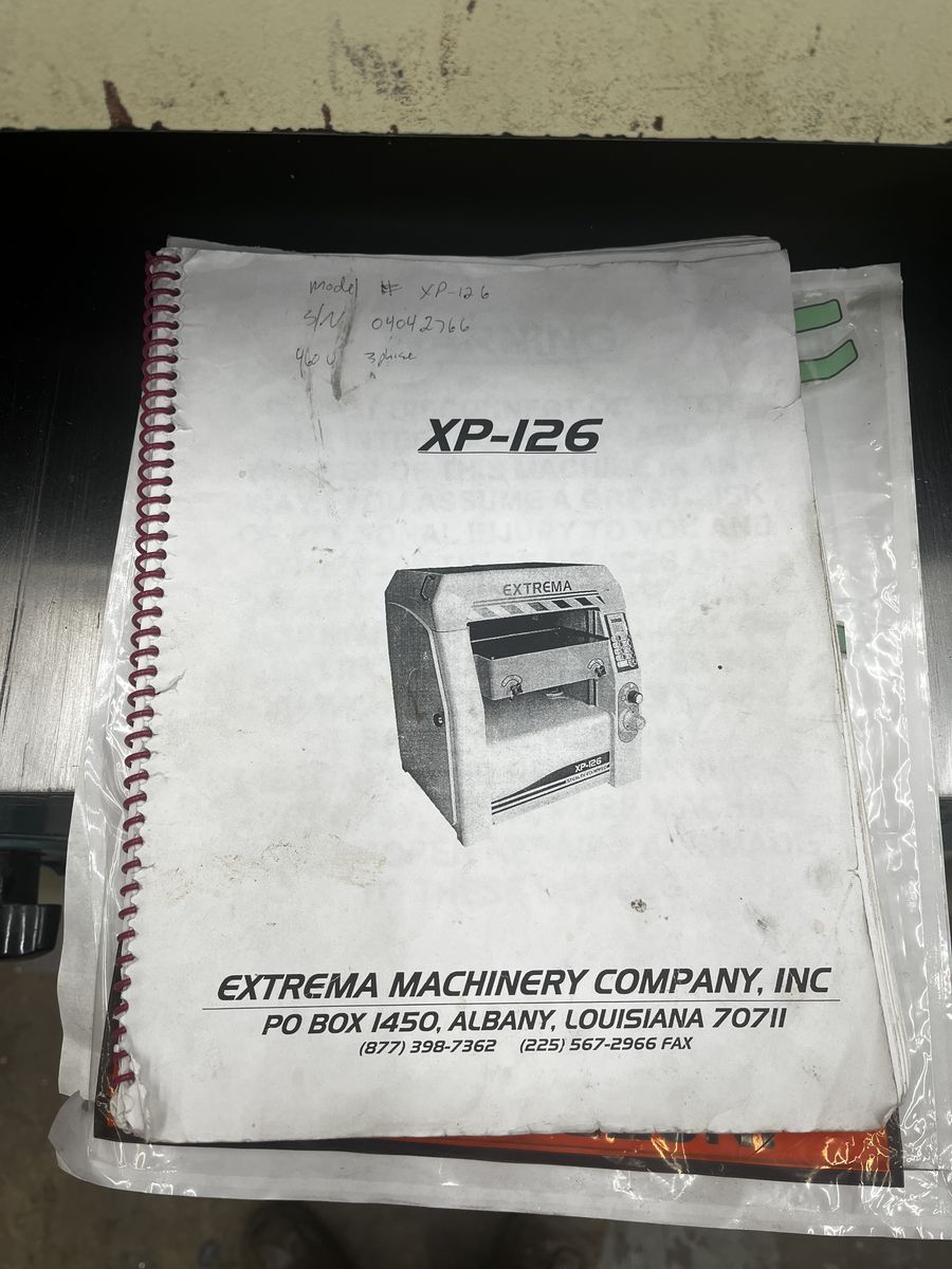 This is an Extrema Titan XP-126 Stealth equipped (helical Head) planer. Comes with original owners manual. The machine does show some cosmetic wear and tear from over the years. But, it is fully functional and ready to work. The knives are two sided, and have one new side. The Machine is 440v 3phase.