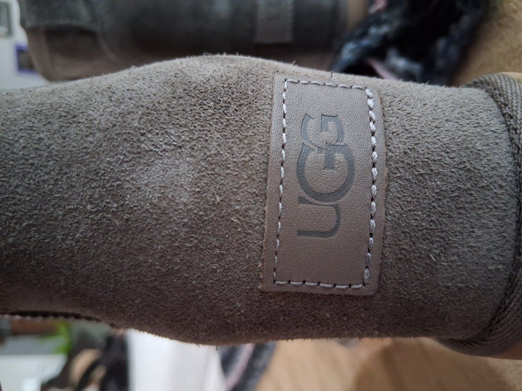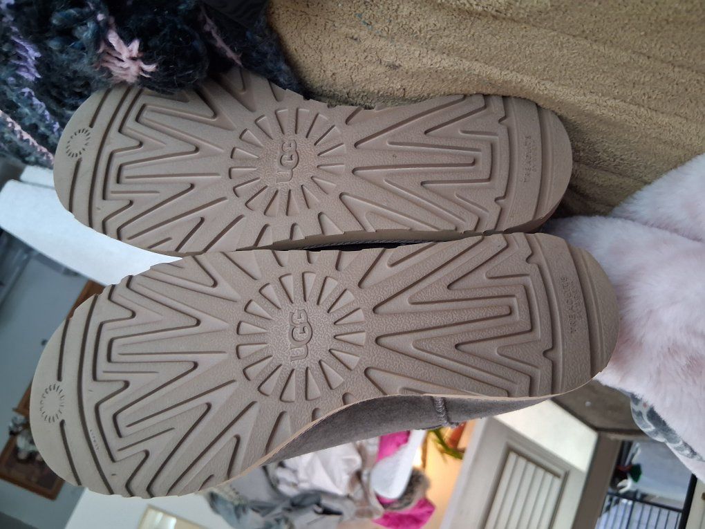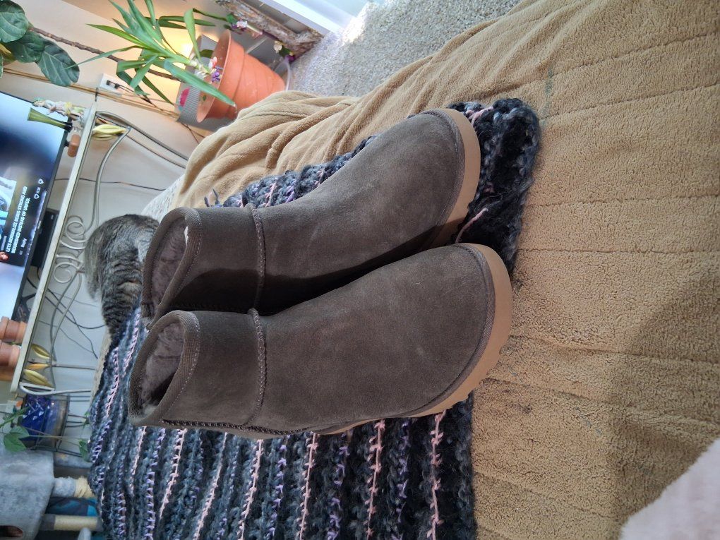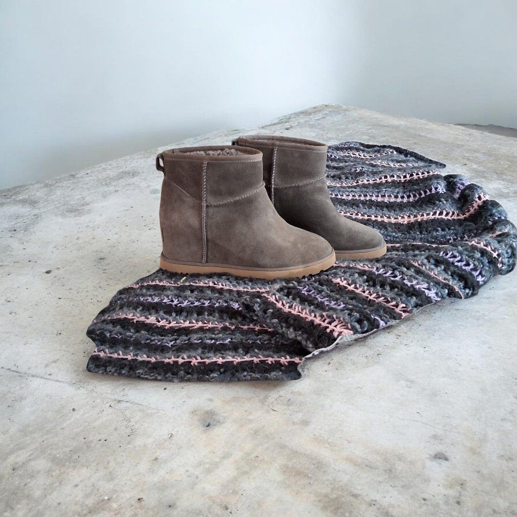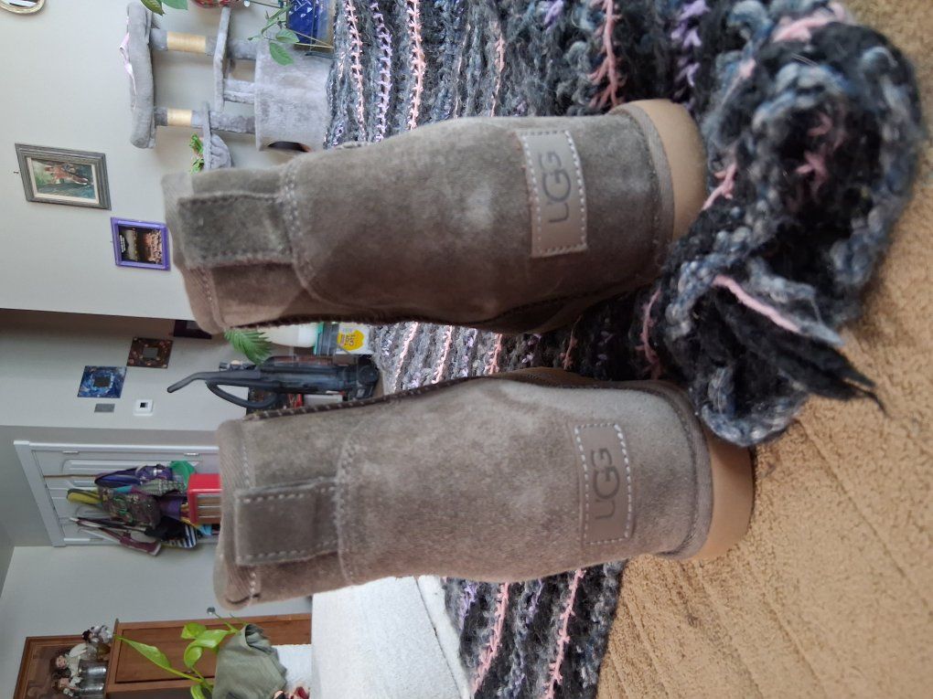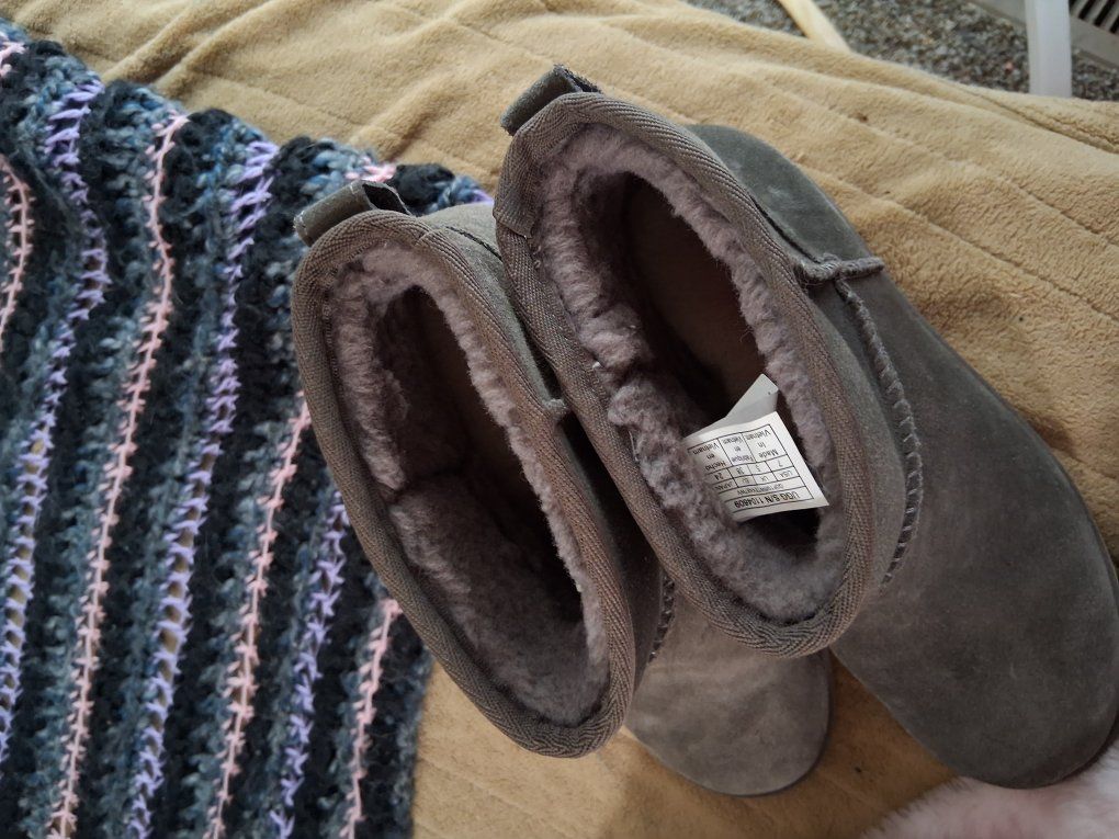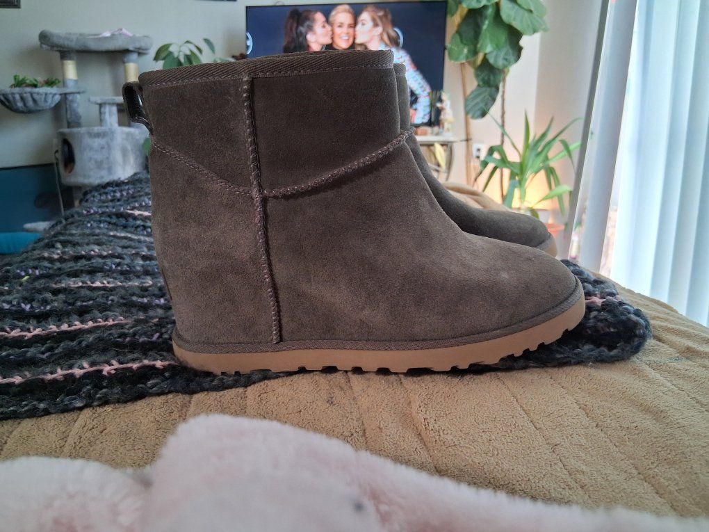 Suede heel booties, wool lined. Amazingly comfortable. Killer gray, worn once.