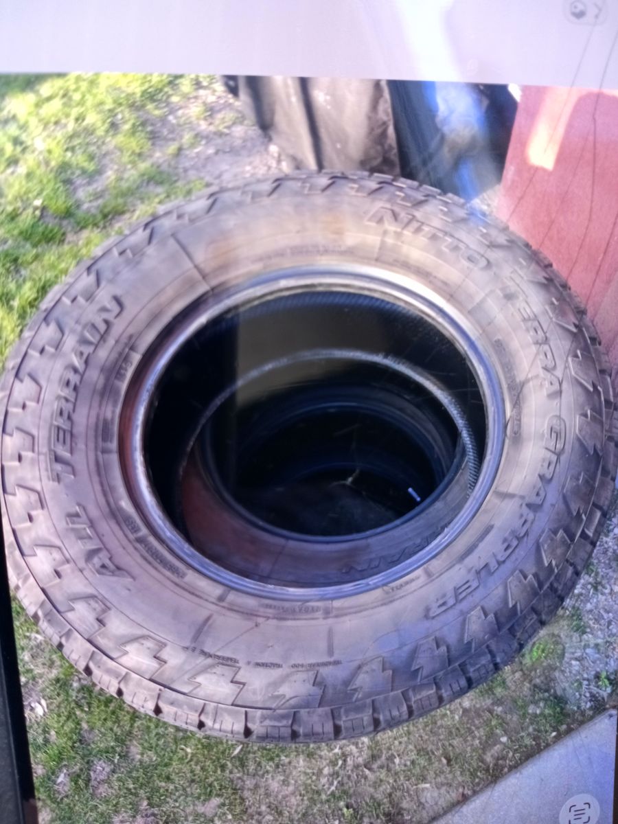 Nice set of 4 tires in good condition P265-70-17 Nitto Terra Grappler All Terrain standard load tires got 9/32 life left I don't mount tires any questions give me a call or text me at any time hablo Espanol cash only located in Ogden No Trades Cash only