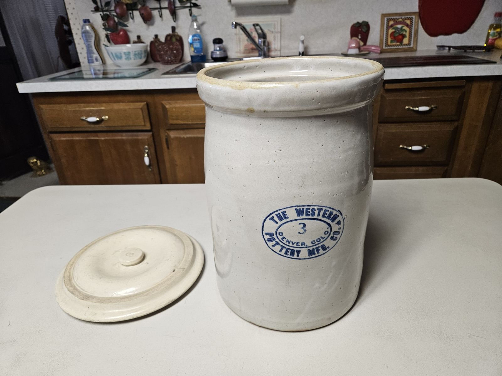 Up for sale I have this fabulous antique 3 gallon crock that was made in Denver. It is about 13.5 inches tall without the lid, and about 10 inches in diameter. Would make for a great decoration. Please check out my other listings for more great vintage finds. Please call or text if you are interested. I live in Sunset which is near Layton (about 30 to 35 minutes from downtown Salt Lake). Thank you so much and have a wonderful day!