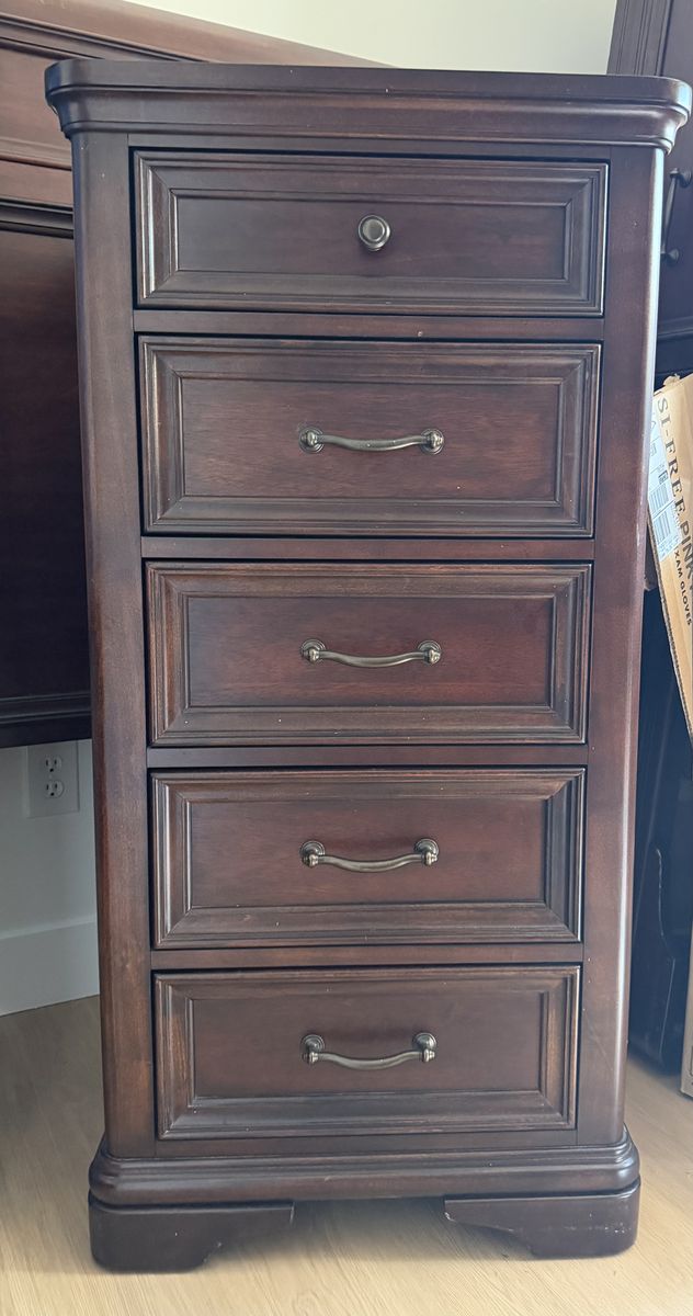 CashAppKing size bed frame with headboard, footboard and built in drawers and a matching 5 drawer dresser