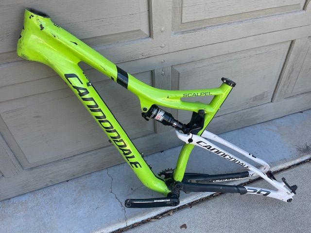 ApplePayThis is a 19" (Large) 2015 Cannondale Scalpel Team Carbon 29" frame; it's been professionally repaired (see picture) at the intersection of the seattube and downtube. It's been solid ever since with no issues. The suspension is working great (lockout/compression).