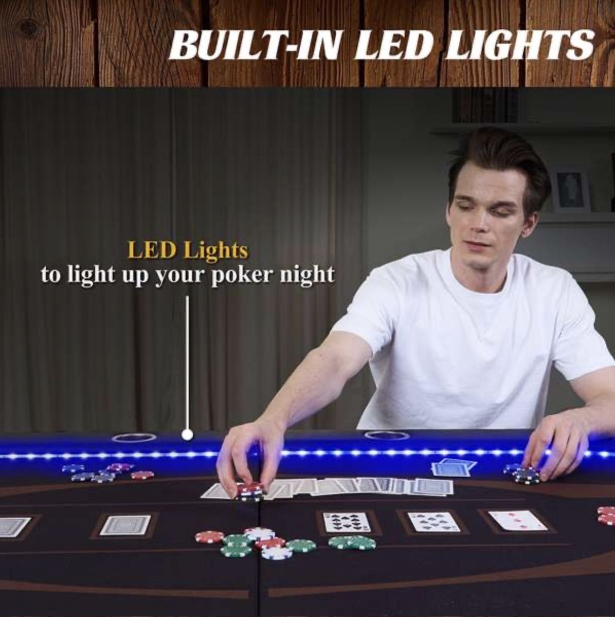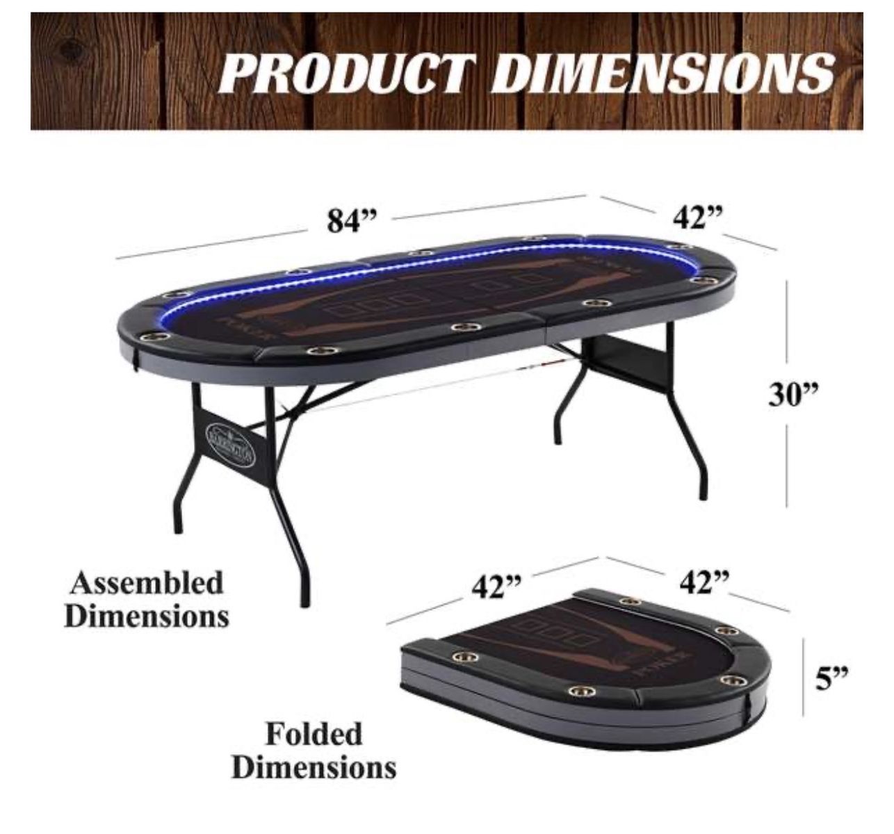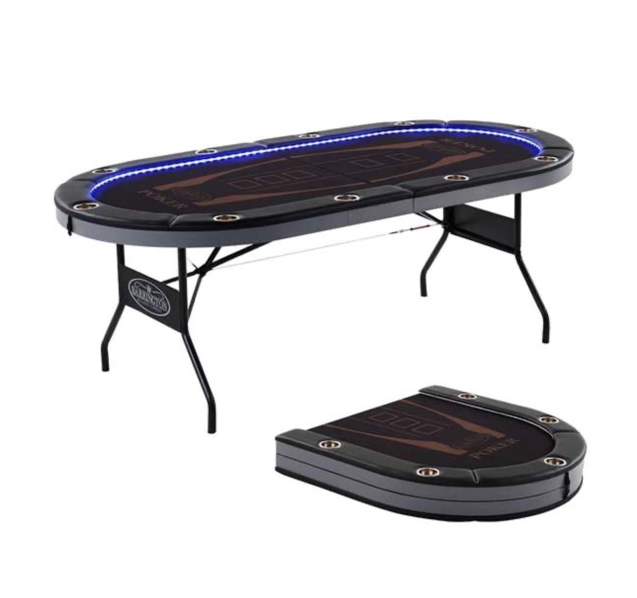 VenmoAwesome 10‑player poker table with built‑in LED lights — perfect for game nights, poker tournaments, family fun, or man cave gatherings! This table folds in half for easy storage and sets up instantly — no assembly required.
