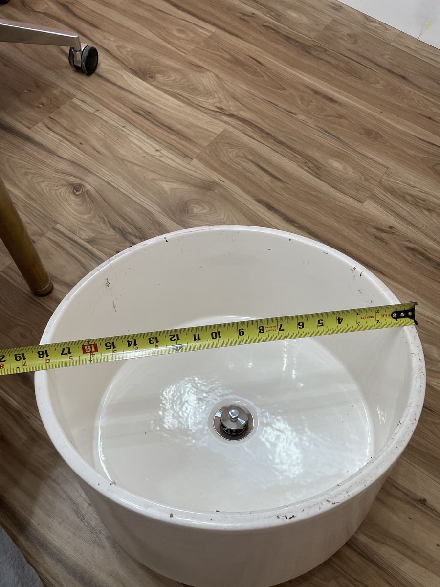 VenmoSelling two white round sinks. Each measures approximately 18.5" across and just under 9" tall. Clean and in good condition, no major damage or cracks.