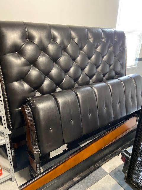 FREE upholstered King sized Bed frame small wear on one side only and a chair. Message Rick to pick up in West Point