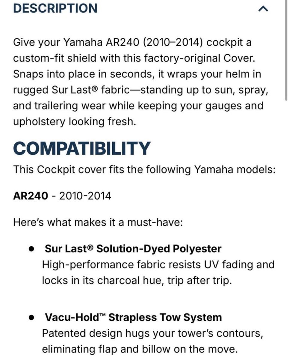 Designed specifically for Yamaha AR240 (2010-2014). Protect your boat from sun, rain, and debris with this premium mooring cover!