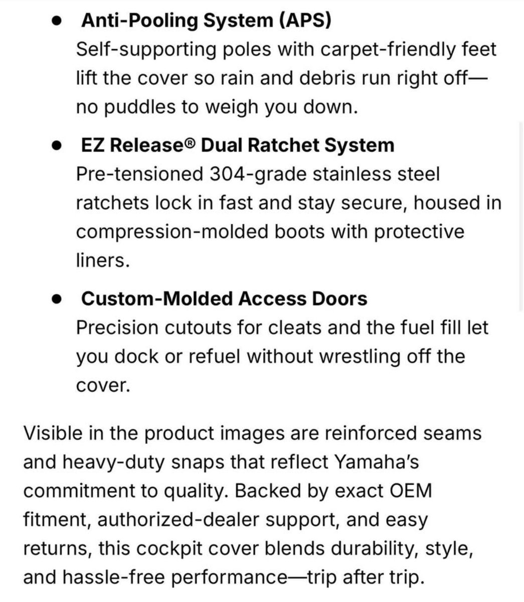 High-performance Sur Last® polyester – UV & weather resistant Vacu-Hold™ strapless tow system – secure fit without straps Self-supporting Anti-Pooling System – prevents water buildup ️ EZ Release® stainless steel ratchet system – easy, snug installation Sleek charcoal color