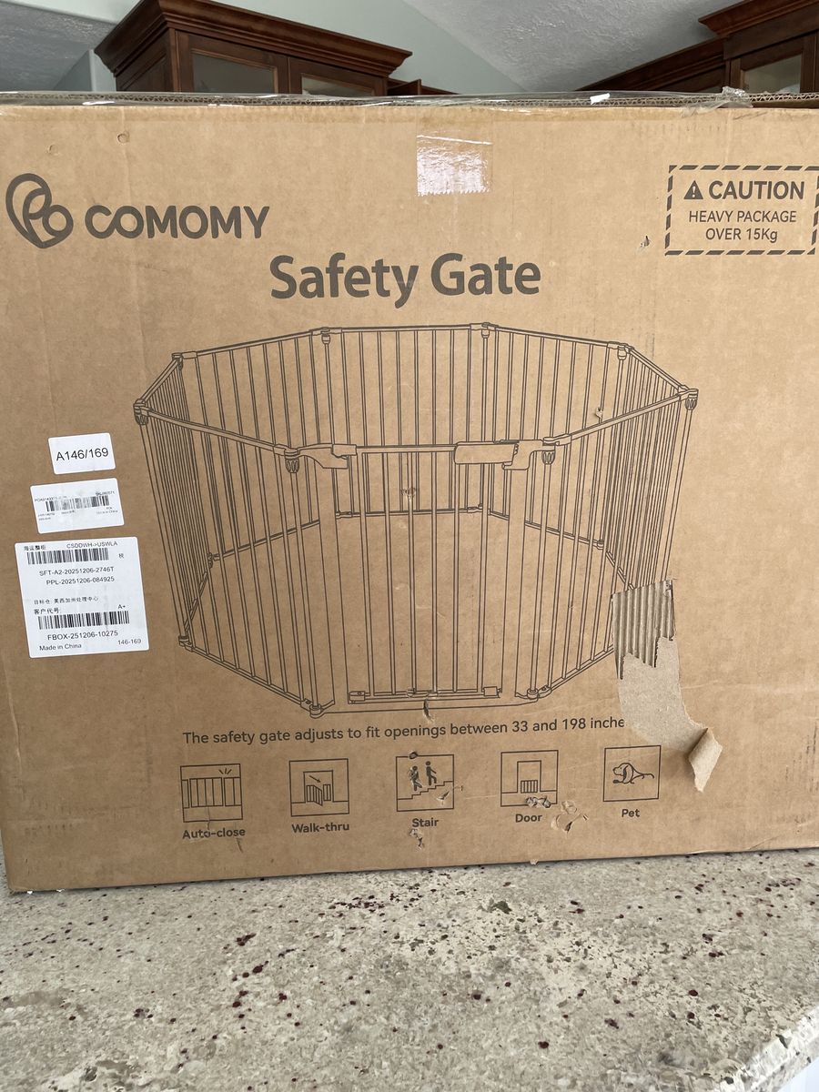 ApplePayCOMOMY 198 Baby Gate Extra Wide, Dog Gate Pet Gate for House Stairs Doorways Fireplace, 3 in 1 Play Yard Child Safety Gate, Auto Close, Hardware Mounted (30 Tall, Black) new in box