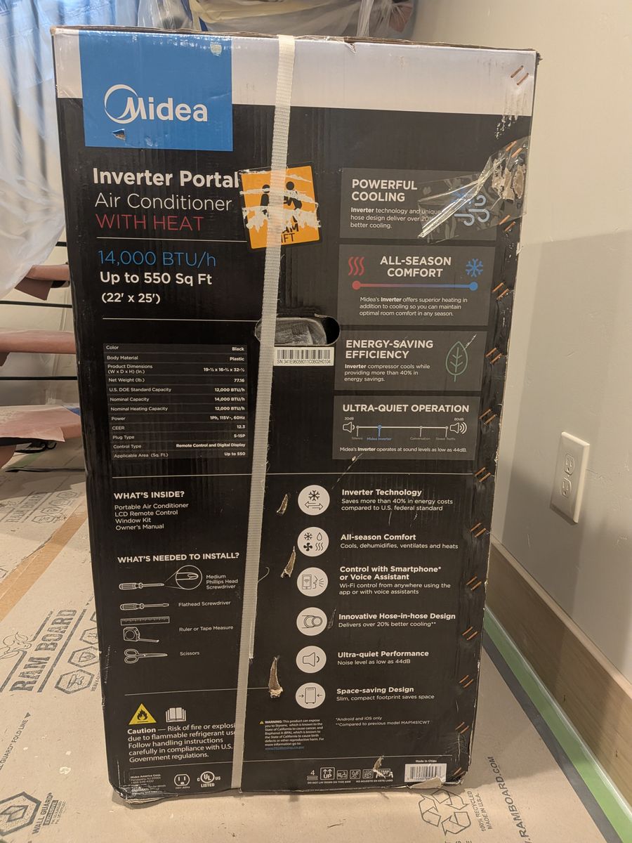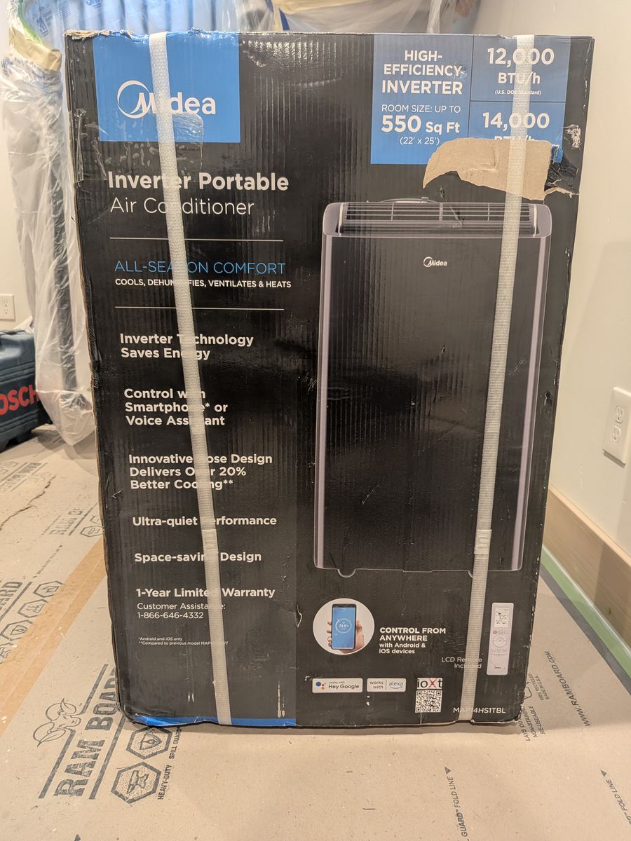 PayPalBrand new Midea portable air conditioner, still in box. 12,000 BTU (DOE) / 14,000 BTU (ASHRAE). Cools, dehumidifies, and has fan mode. Window kit included. Retails for $550+.