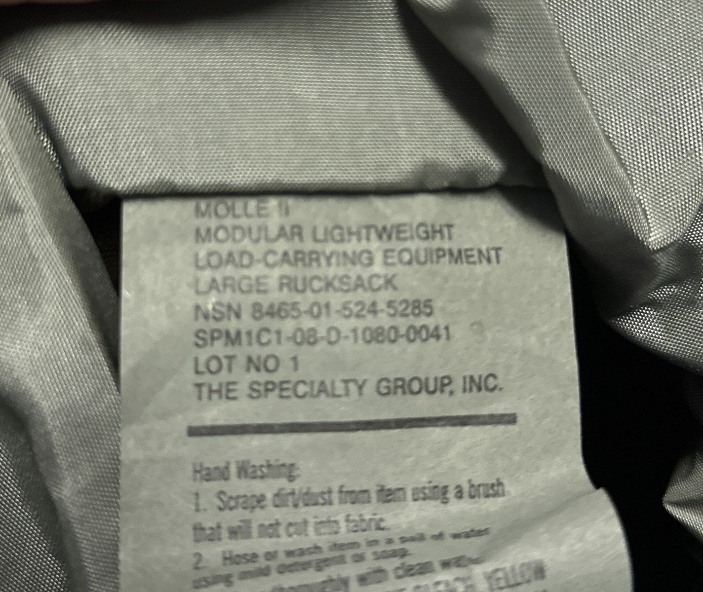 Genuine U.S. Military MOLLE II Large Rucksack (NSN 8465-01-524-5285).