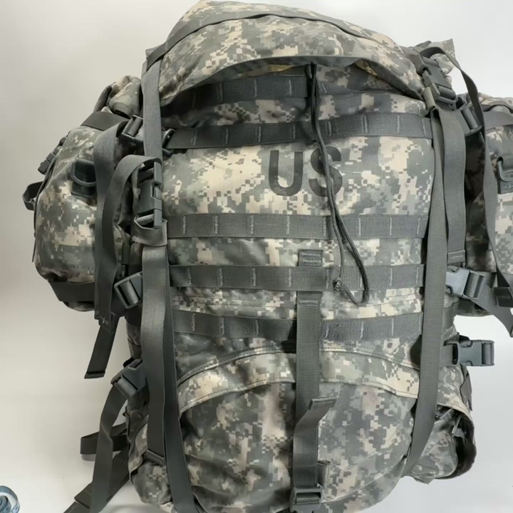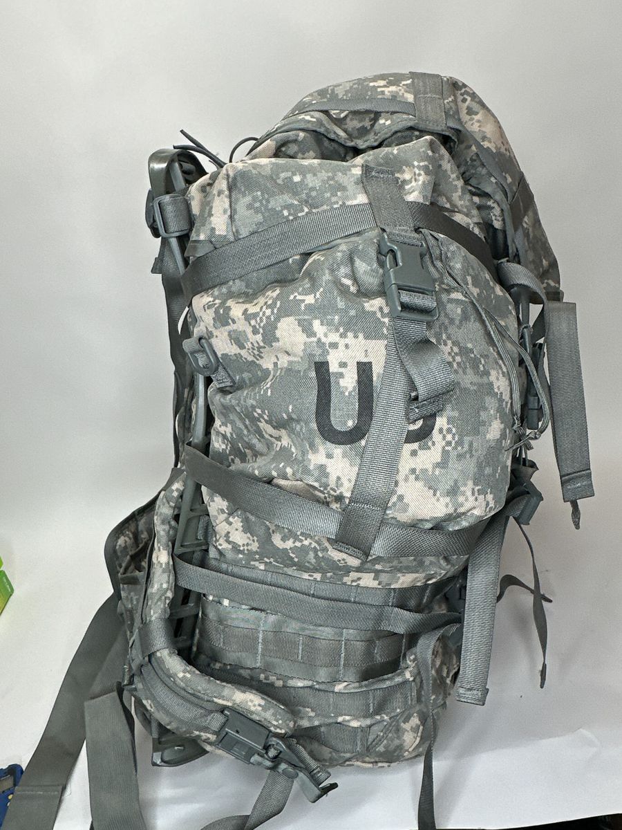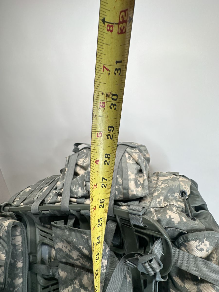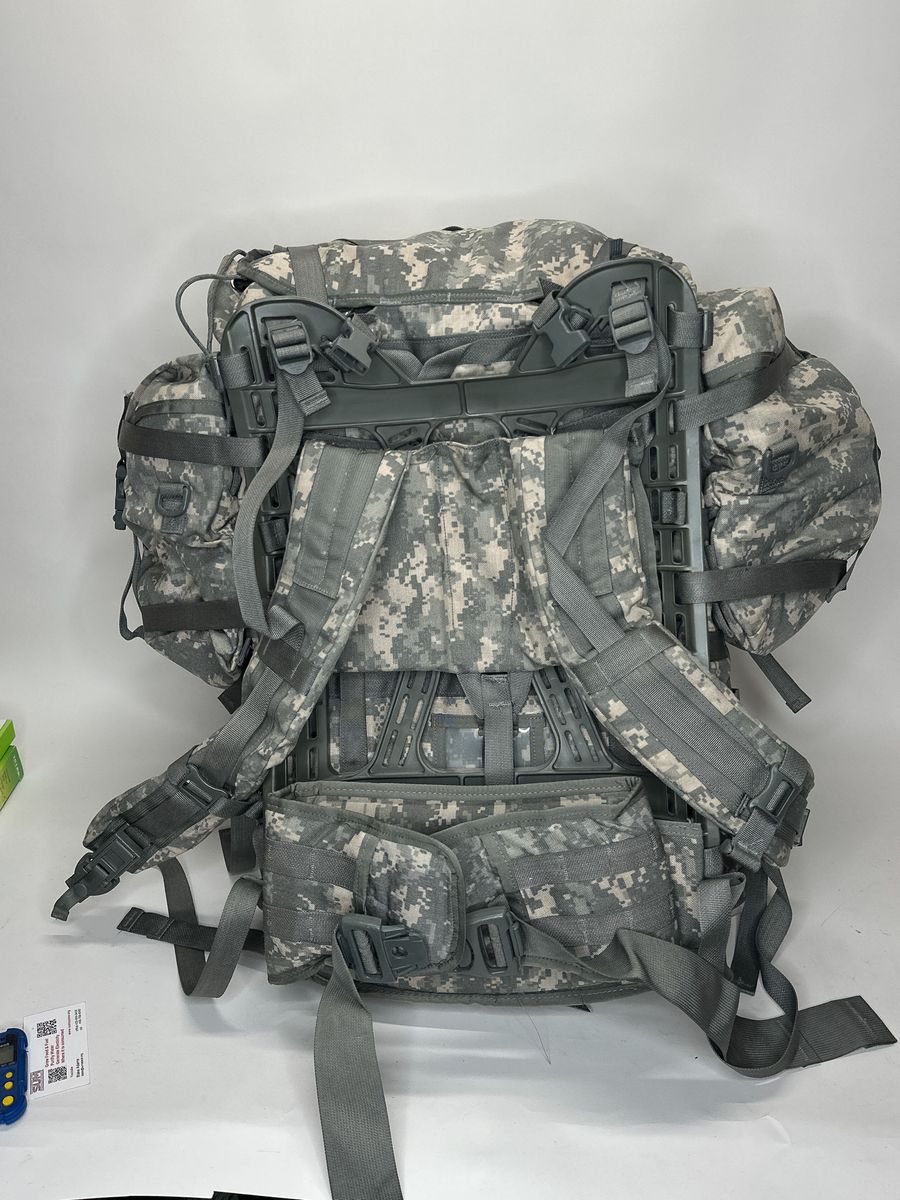 This is the large field pack used by the U.S. Army. Built tough for real load hauling — not a lightweight camping pack. Designed to attach to the MOLLE II frame system (frame and straps sold separately unless noted).