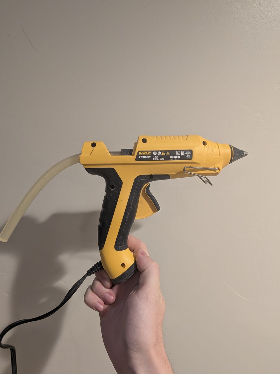 CashAppDeWalt rapid-heat ceramic glue gun (DWHTGR50). Heats up fast, consistent temp, comfortable grip. Solid tool for crafts or shop projects. Works great.