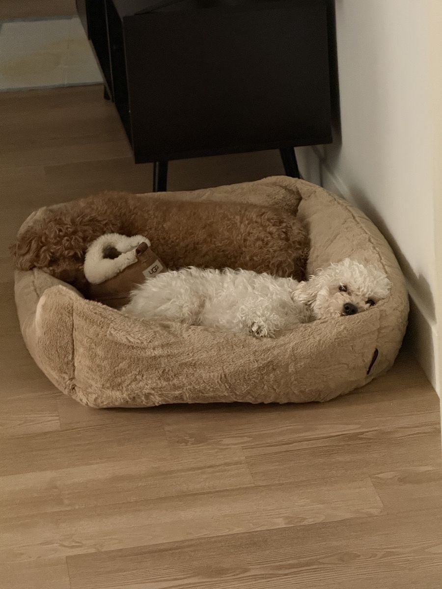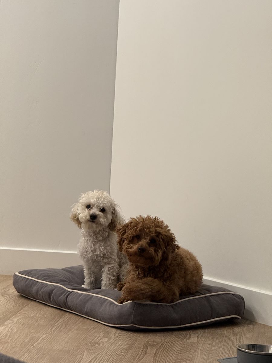 Coming with food ,brand new bed that I just bought for them ,couple pads ,food and foods and water pots. A lot of toys and treats.if someone get both I do have groomer machine as well but that doesn’t apply for buying the signal also + Cannel .both of them are able to have beby but they never got one as male is still too young .