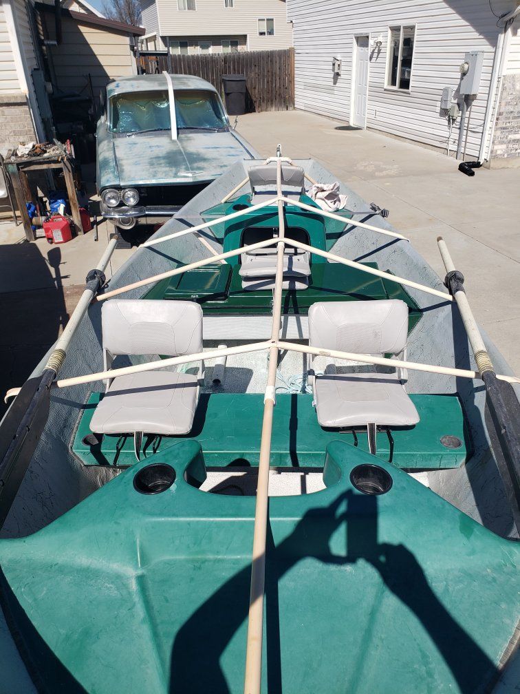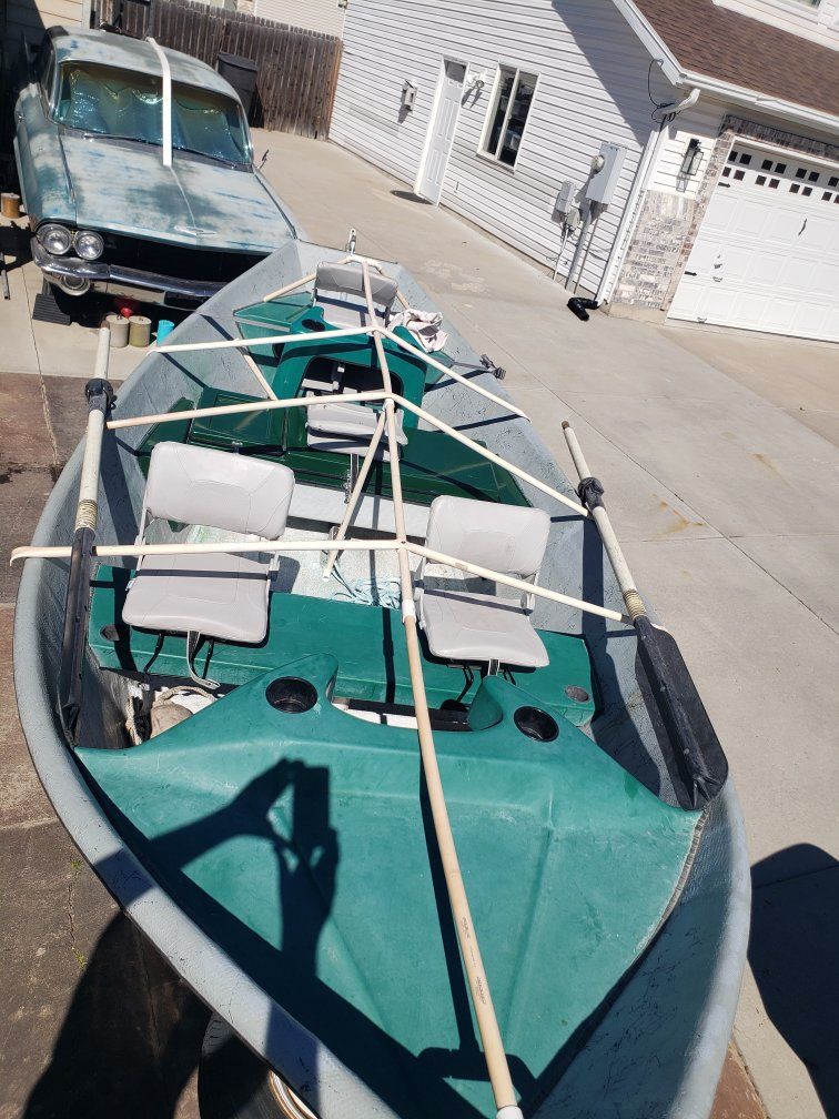 PayPalFirberglass 16 foot Slide Rite. reconditioned trailer, new tires, paint, jack, lights, bunks... new boat paint on floor, repaired and painted center row box, new seats... seats 4. set of oars included.. added backrest and pedestal for rear angler.. repaired and replaced anchor system with 35lb anchor, new cover... great boat in great condition.. great for beginners rows like a pro.. come check it out. $4000